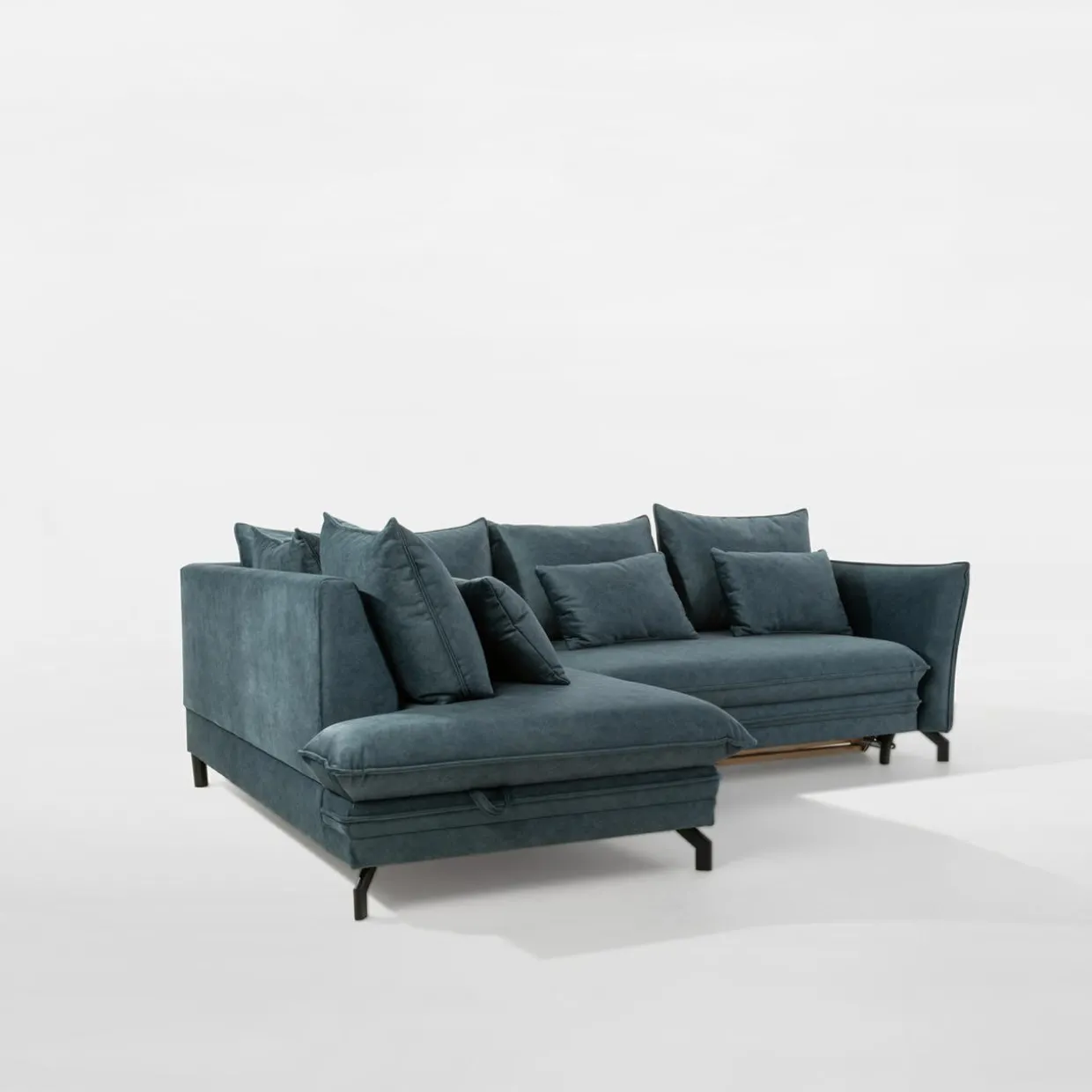Welurowa tkanina i ogrom poduch – w narożniku OPTIMA rozpłyniesz się podczas każdej drzemki. Wygodny system rozkładania i duża powierzchnia spania będą idealnym miejscem do zapraszania znajomych na nocowanie.