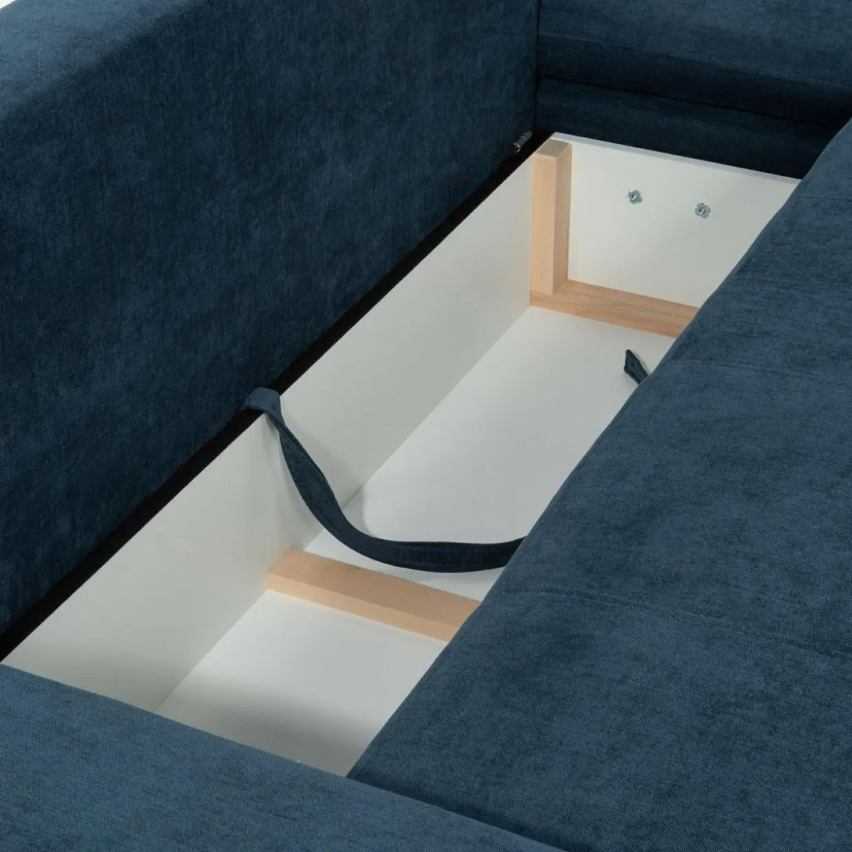 - Pojemnik w leżance da Ci dużo przestrzeń na pościel lub inne domowe tekstylia. Możesz z niego korzystać, nawet jeśli narożnik będzie rozłożony.