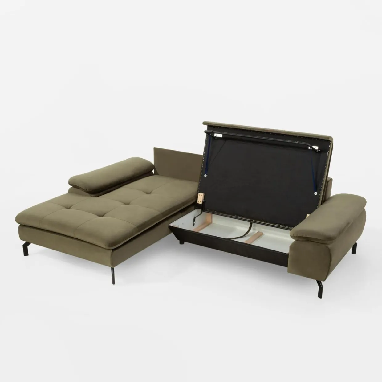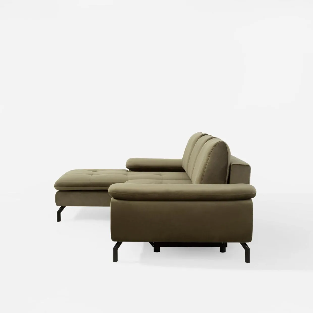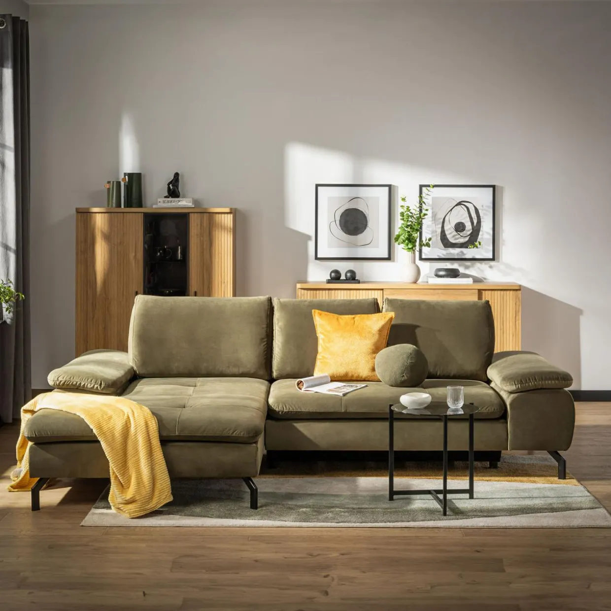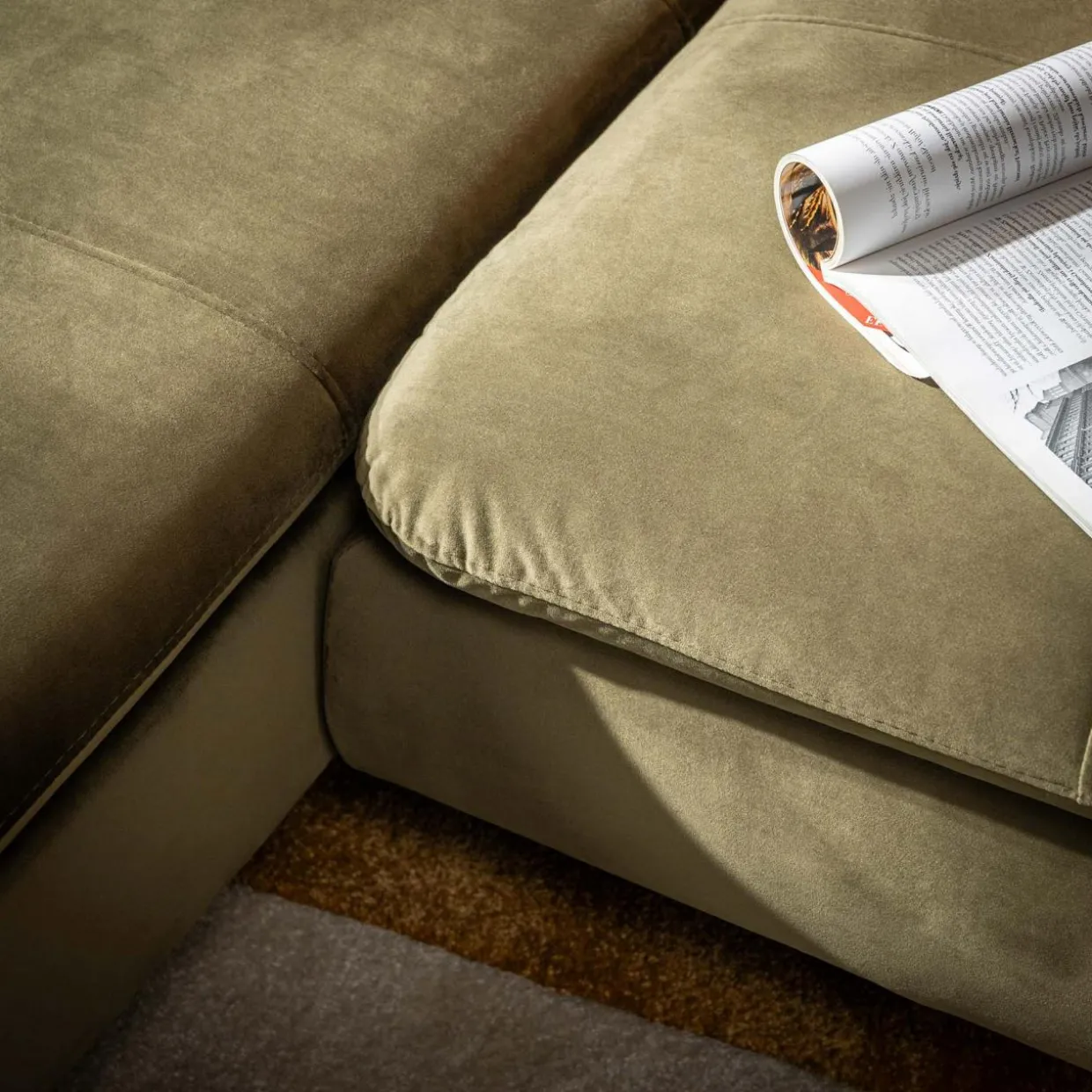 Na siedząco czy na leżąco? Wypoczywaj na narożniku VESPA w sposób, który Ci odpowiada. VESPA doskonale wpasuje się w różne wnętrza, wnosząc do naturalny odcień oliwkowej zieleni.