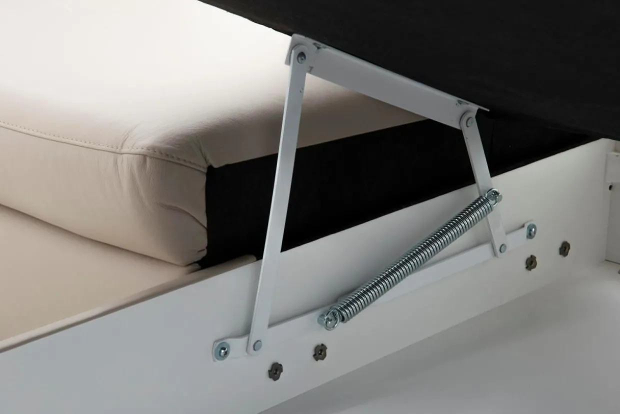 Stelaż pod siedziskiem wysuwamy i podnosimy za pomocą uchwytu. Mebel nie wymaga odsuwania od ściany. Idealny do okazjonalnego spania.