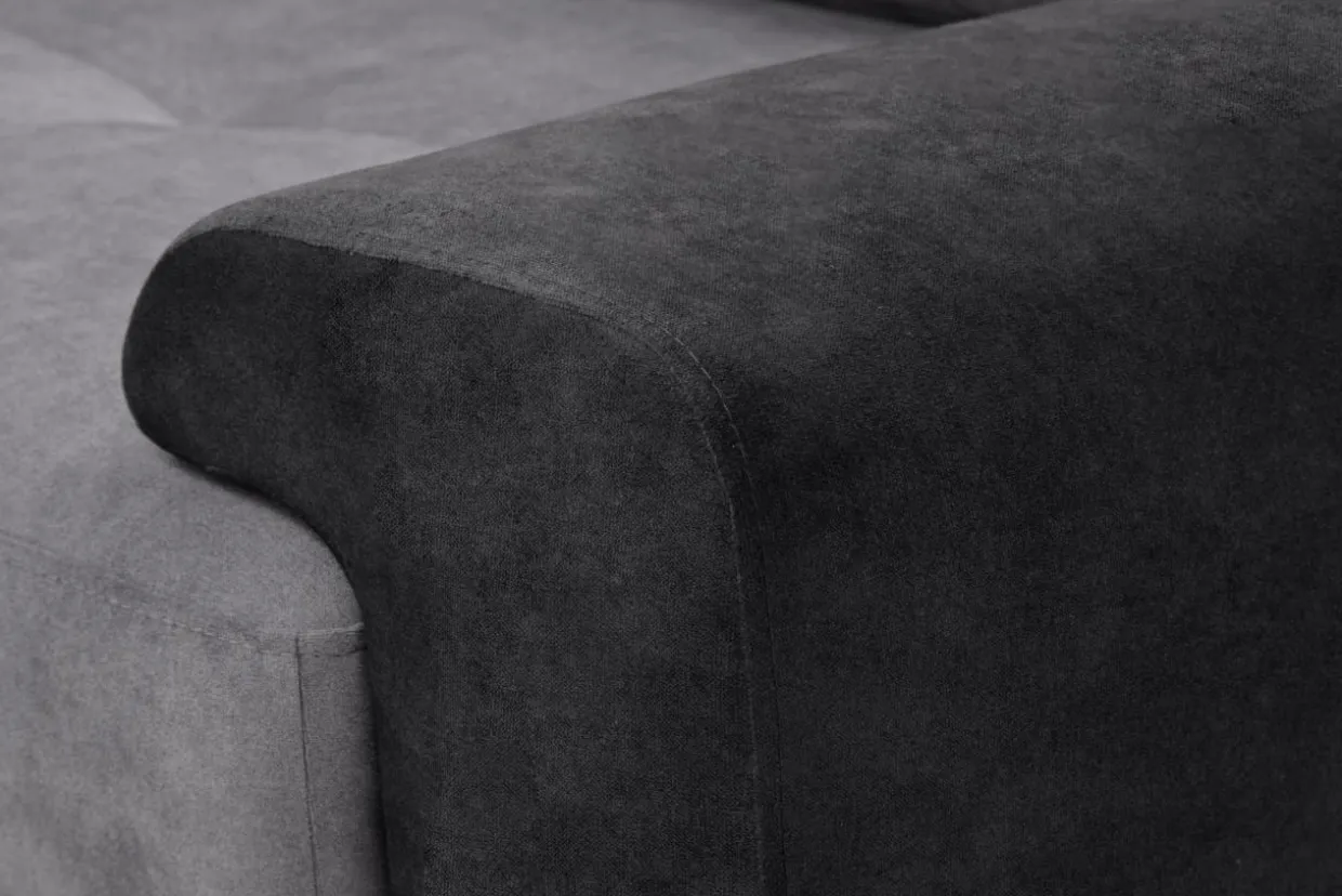 Pokryto go welurową tkaniną ZETTA w 2 odcieniach szarości, dzięki czemu podkreśli nowoczesny charakter wystroju wnętrza.
