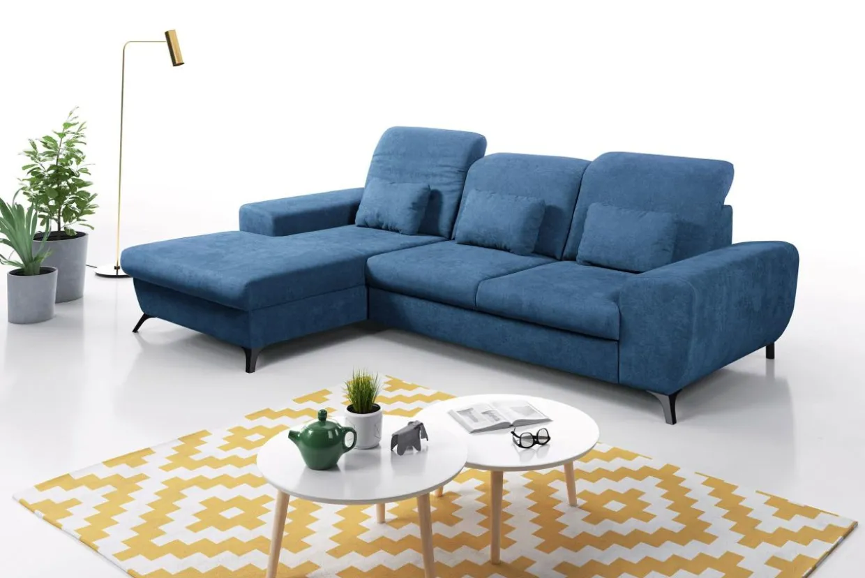 - Narożnik ALTA został przeszyty materiałem o wyrazistej strukturze i chmurnym, niebieskim kolorze.