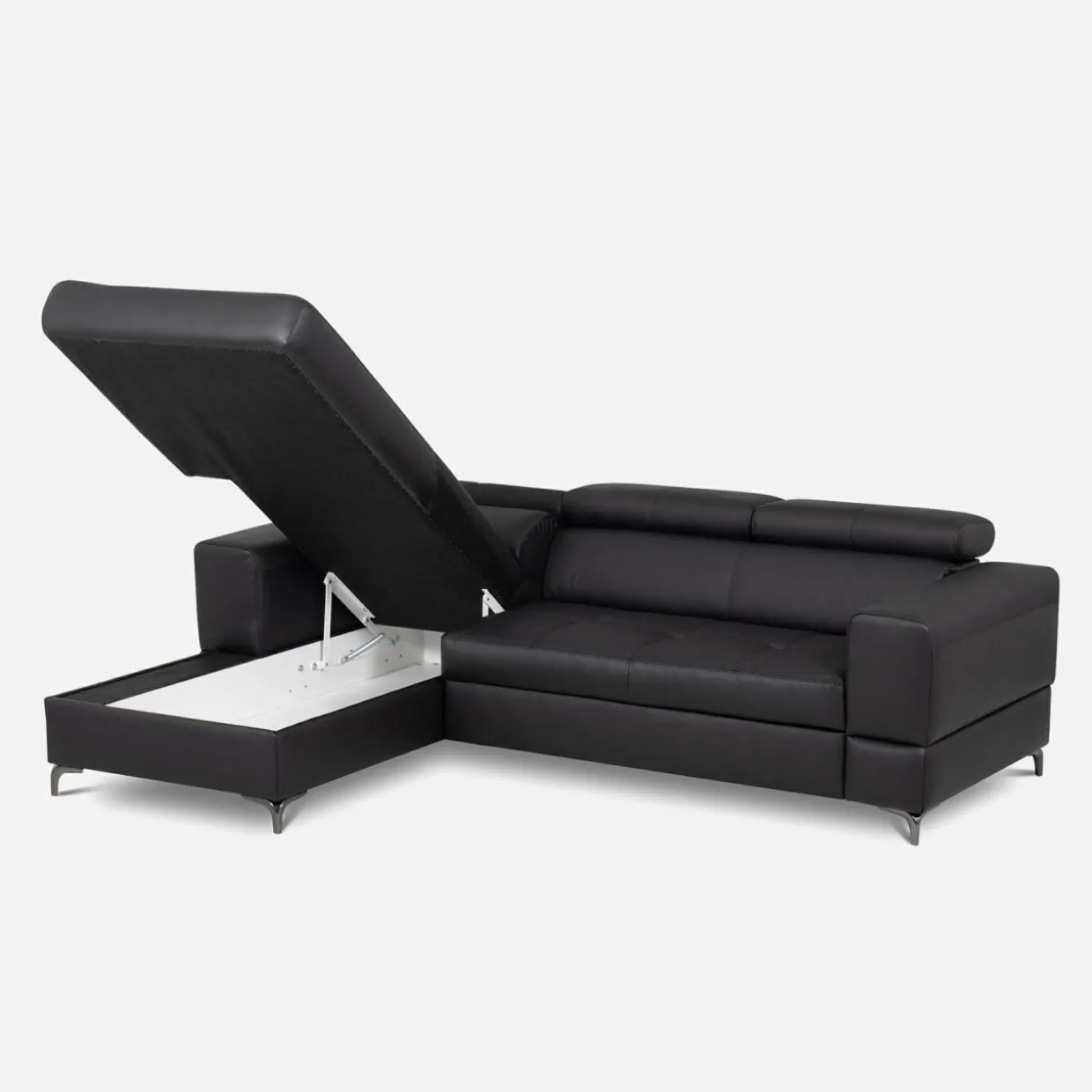 Narożnik posiada wbudowany pojemnik. Możesz wykorzystać go do przechowywania pościeli, koców lub innych tekstyliów.