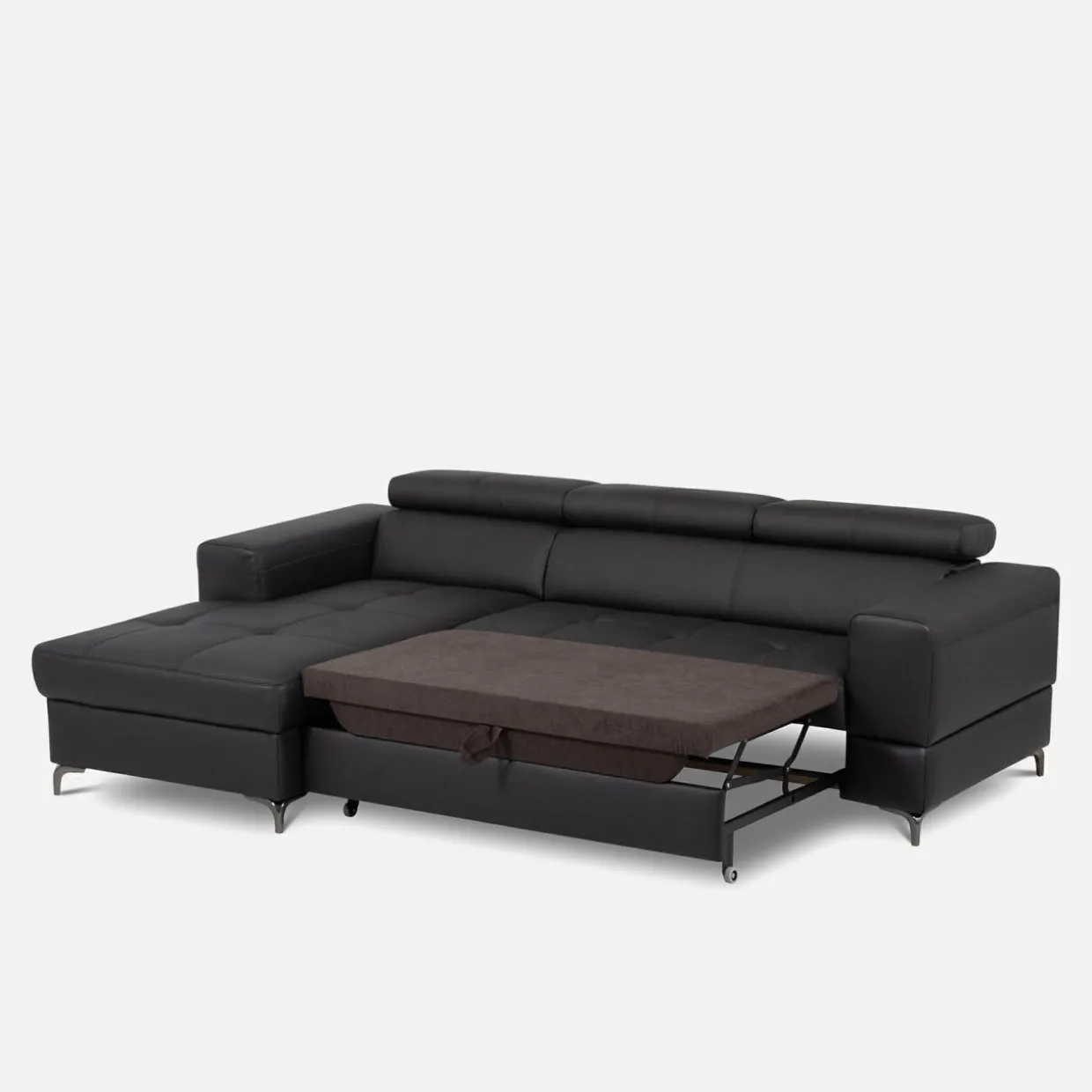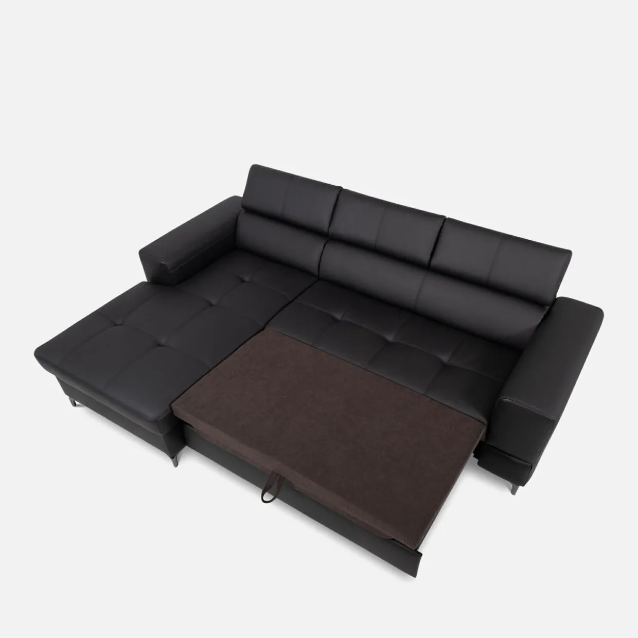 Rozłóż narożnik w następujący sposób: wysuń szufladę znajdującą się pod siedziskiem, pociągnij za specjalny uchwyt, wyciągnij materac.
