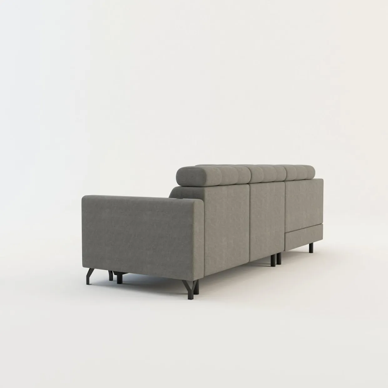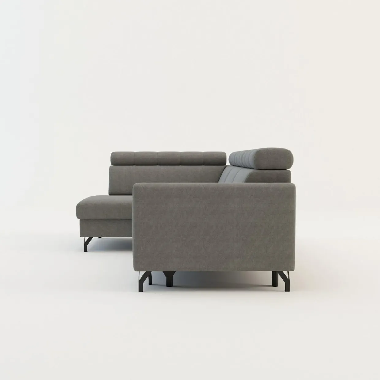 - Pojemnik na pościel w leżance zapewni przestrzeń na pościel, koce i inne domowe tekstylia. Możesz z niego korzystać, nawet jeśli narożnik będzie rozłożony.