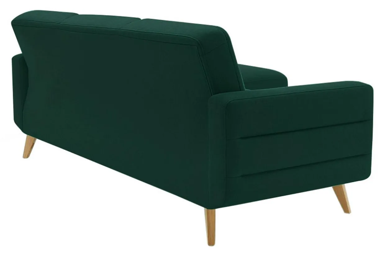 - Pikowane oparcie komponuje się z klasycznymi elementami wystroju. Drewniane nóżki i przeszycia na bokach sprawiają, że sofę wpasujesz w nowoczesne, retro wnętrza.