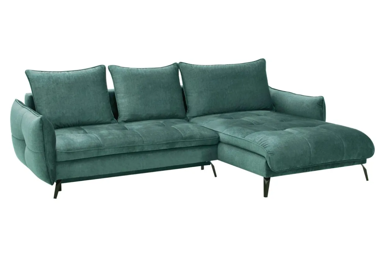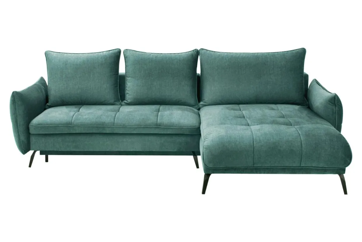 - Metalowe nóżki w czarnym kolorze świetnie pasują do nowoczesnego designu narożnika i dodają mu lekkości.