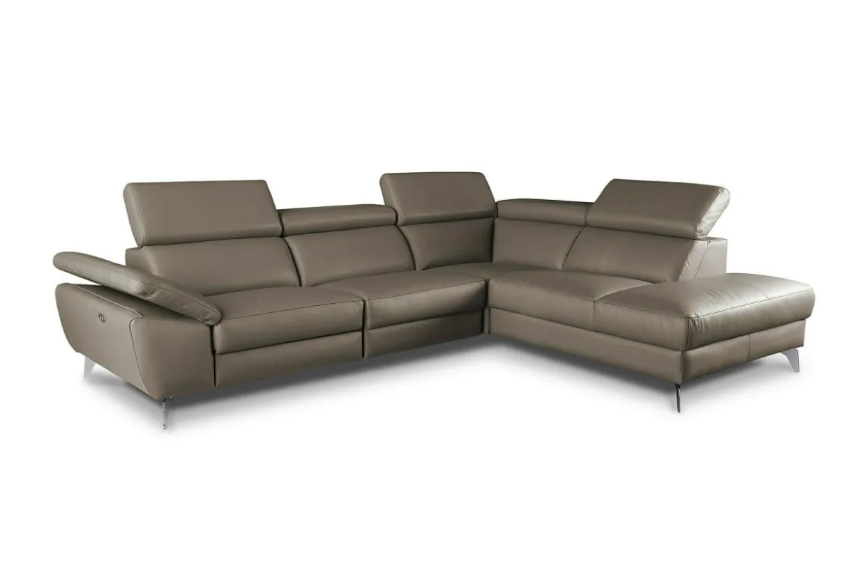 Tapicerka narożnika została pokryta skórą naturalną z kolekcji DOLLARO, model SMOG.