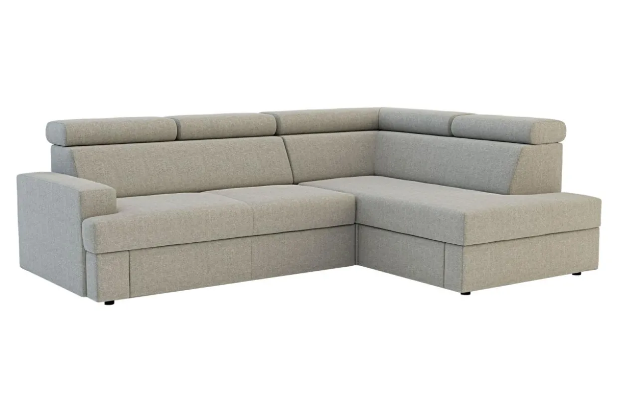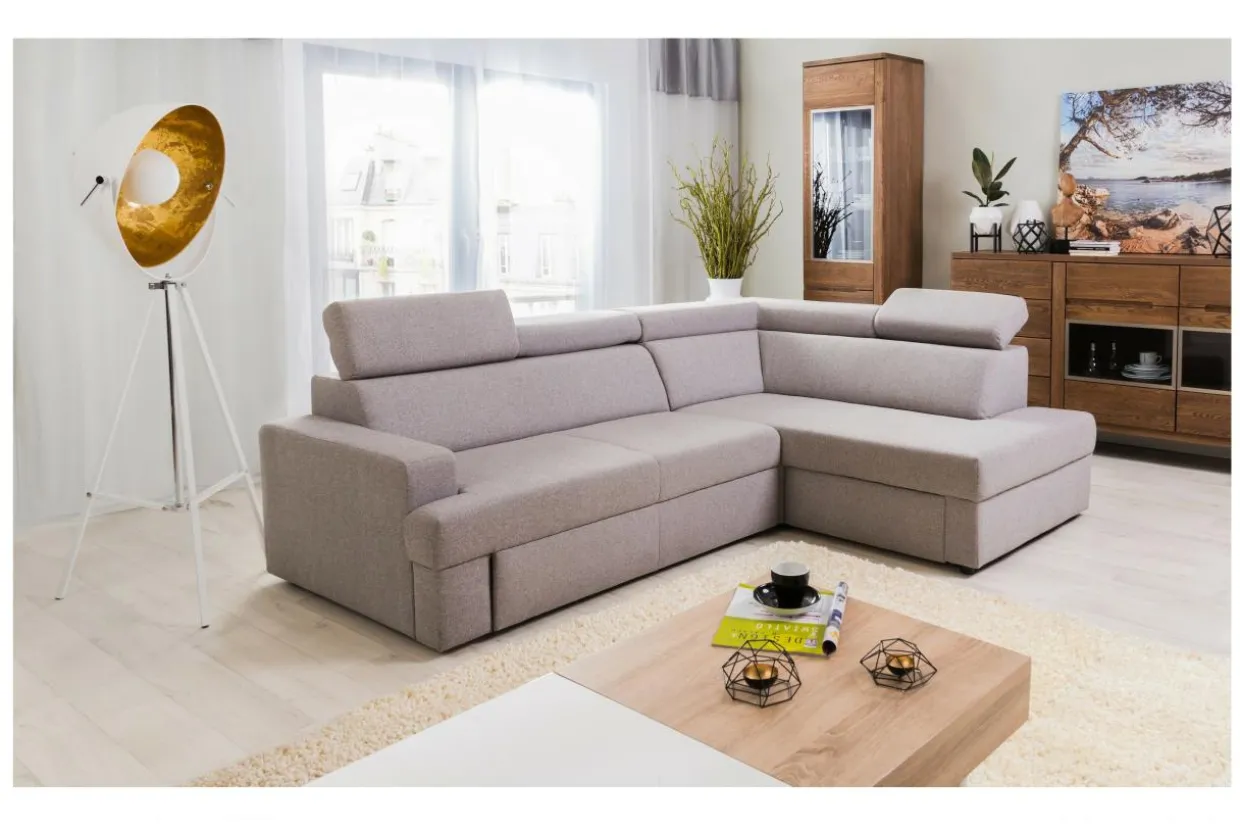 Narożnik posiada pojemnik na pościel w formie szuflady umieszczonej w otomanie.