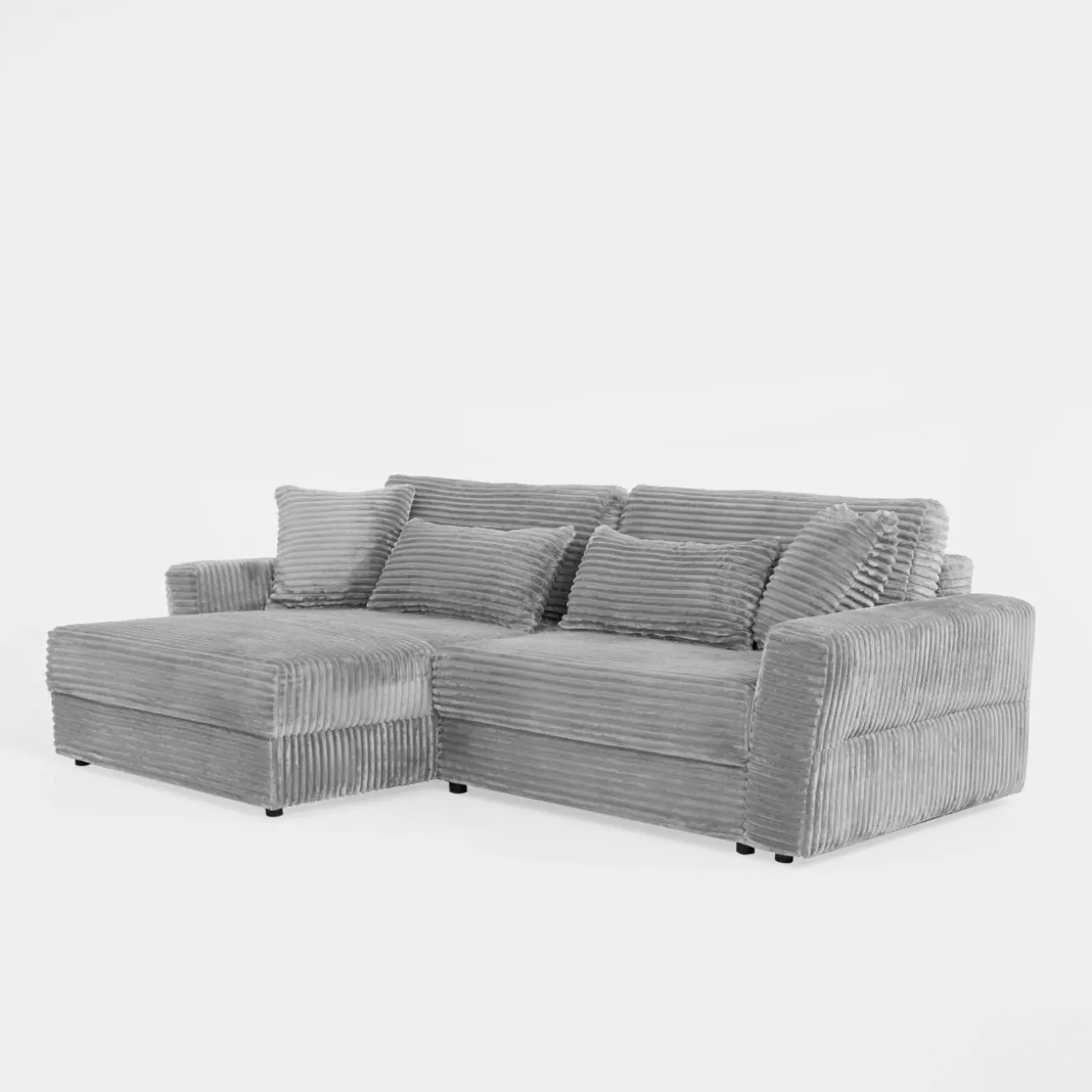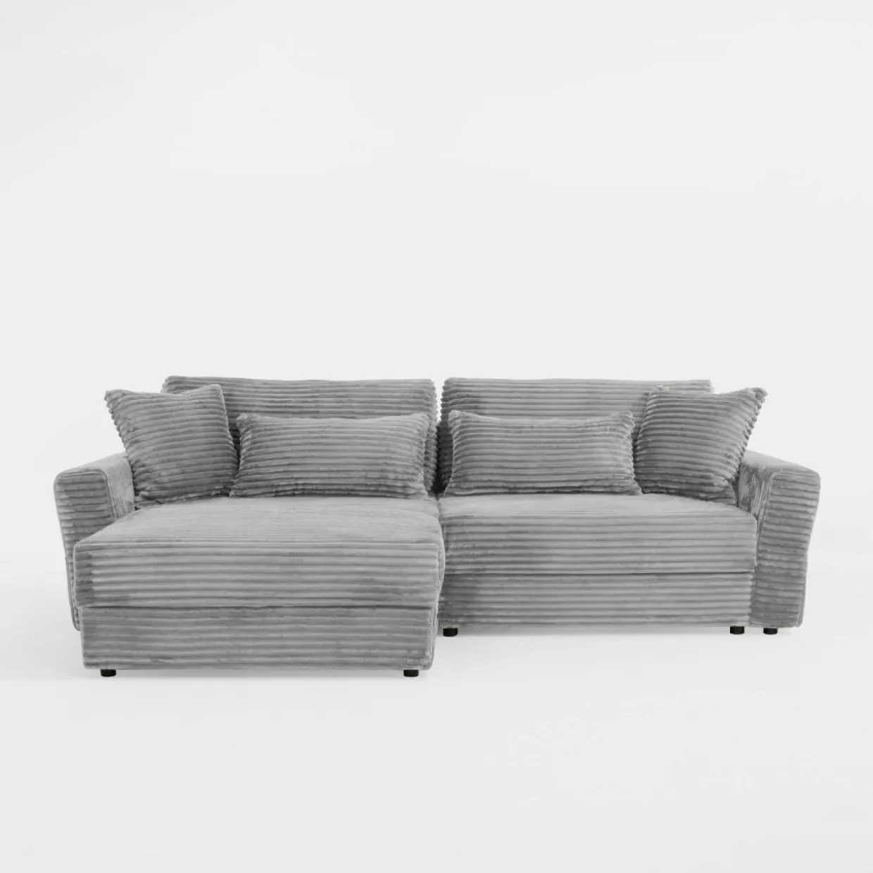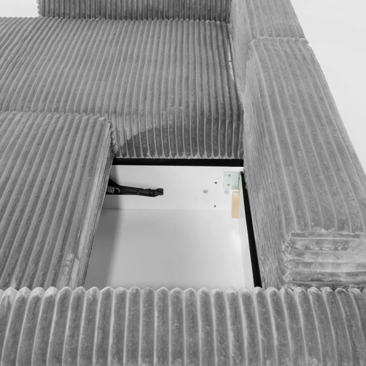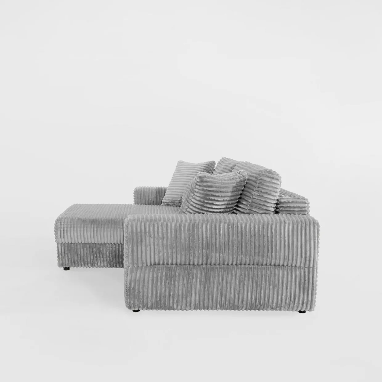 - Narożnik pokryto przyjemnym w dotyku sztruksem – poczujesz przyjemne otulenie podczas picia porannej kawy lub popołudniowej drzemki.