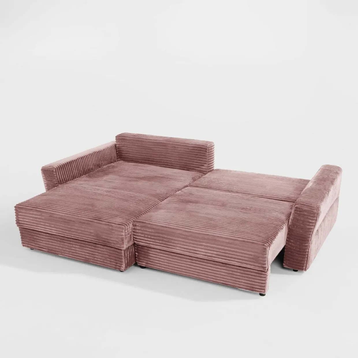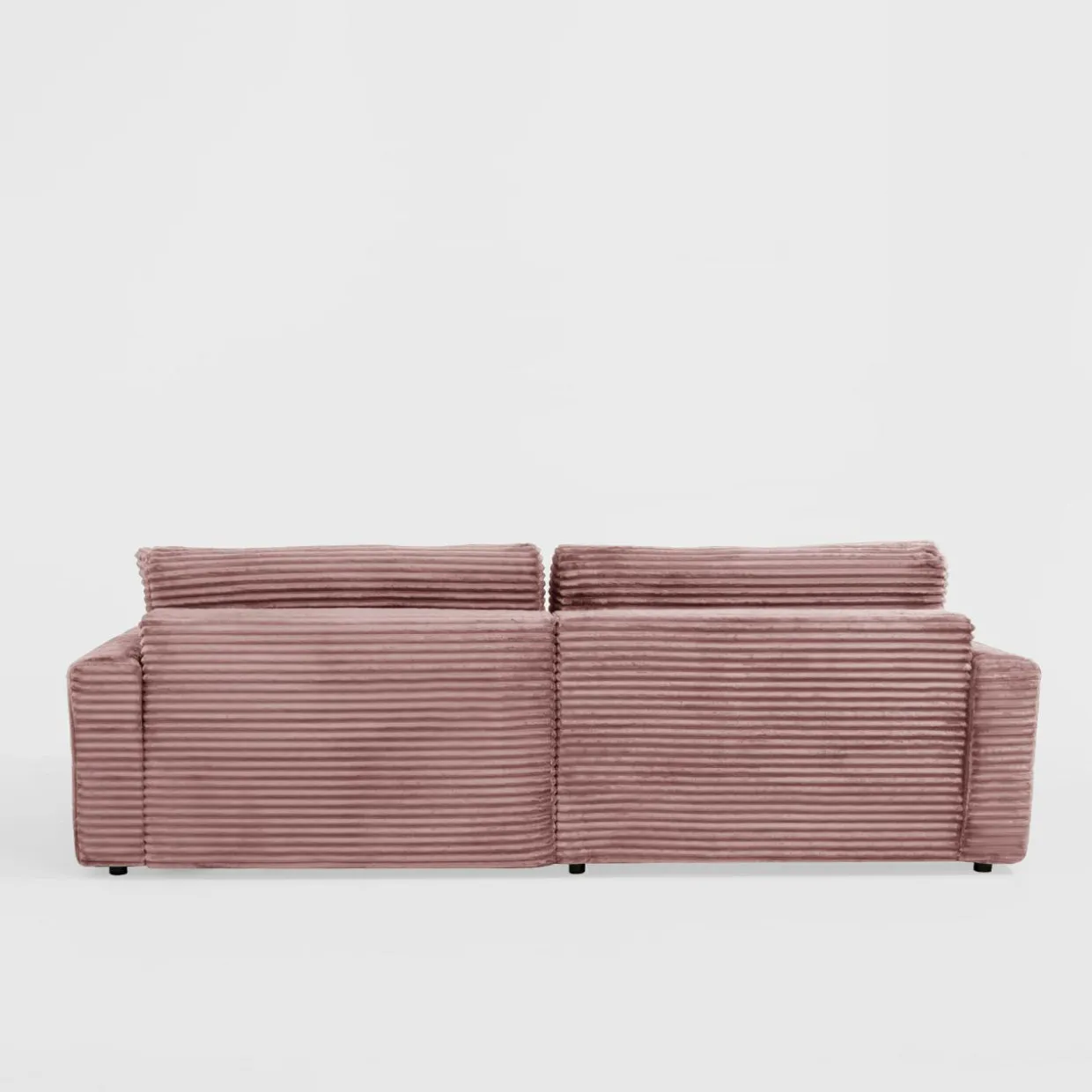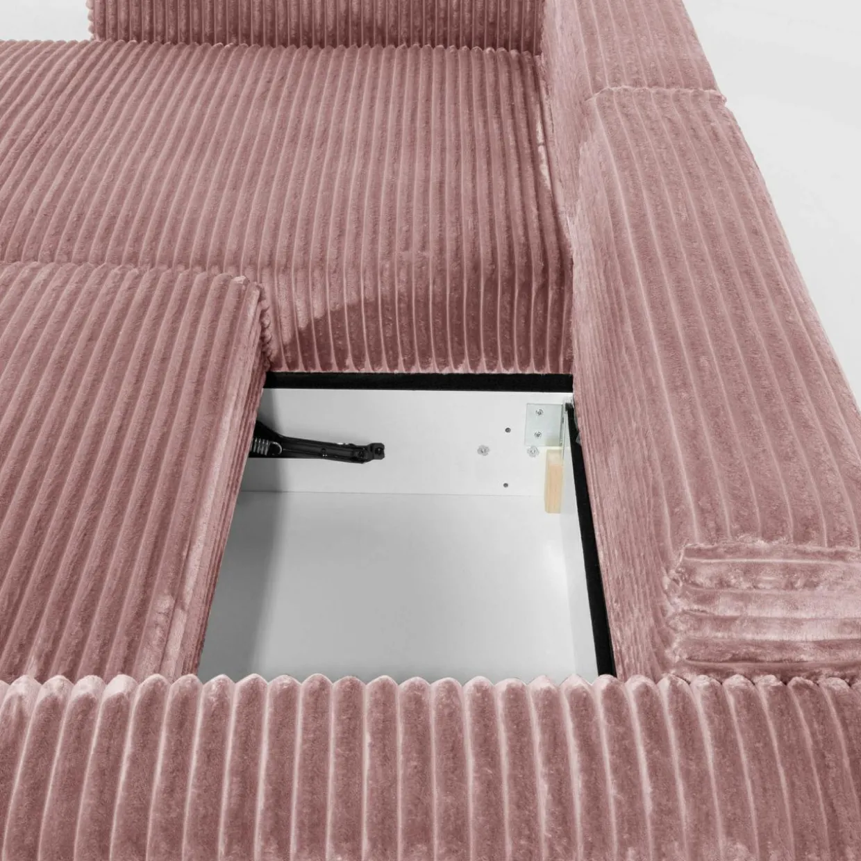 - Narożnik pokryto przyjemnym w dotyku sztruksem – poczujesz przyjemne otulenie podczas picia porannej kawy lub popołudniowej drzemki.