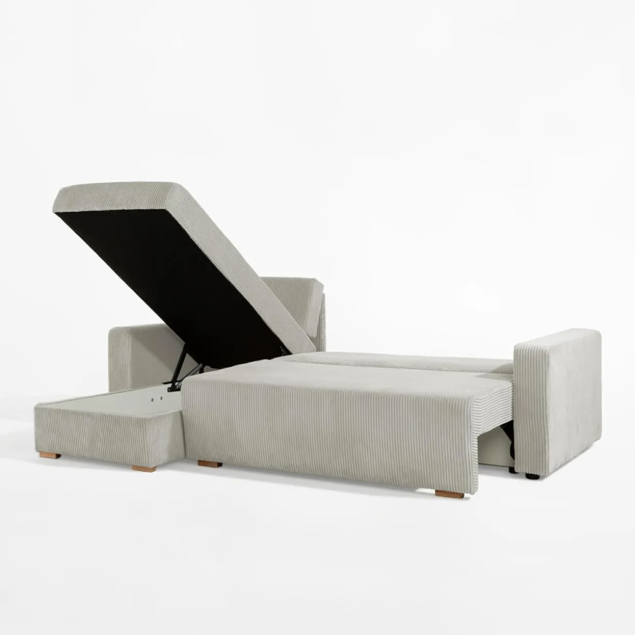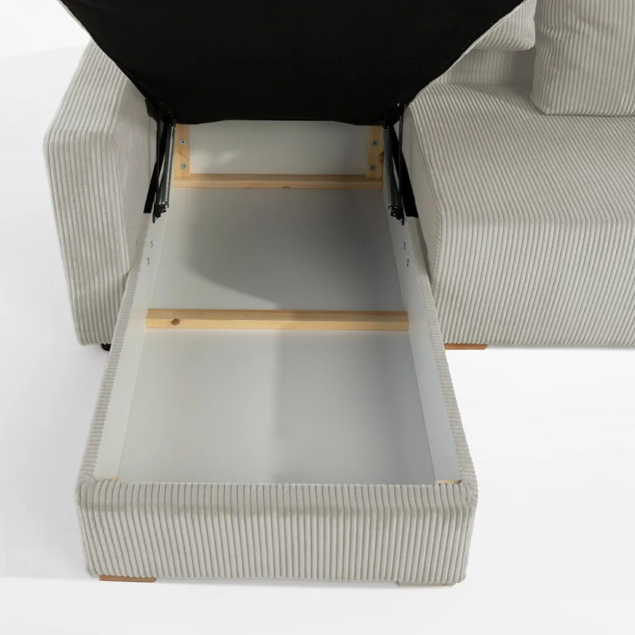 - Potrzebujesz więcej miejsca na domowe tekstylia? Narożnik posiada 2 pojemniki, które dadzą Ci większa przestrzeń do przechowywania pościeli, koca i poduszek – odtąd wszystko znajdzie swoje miejsce.