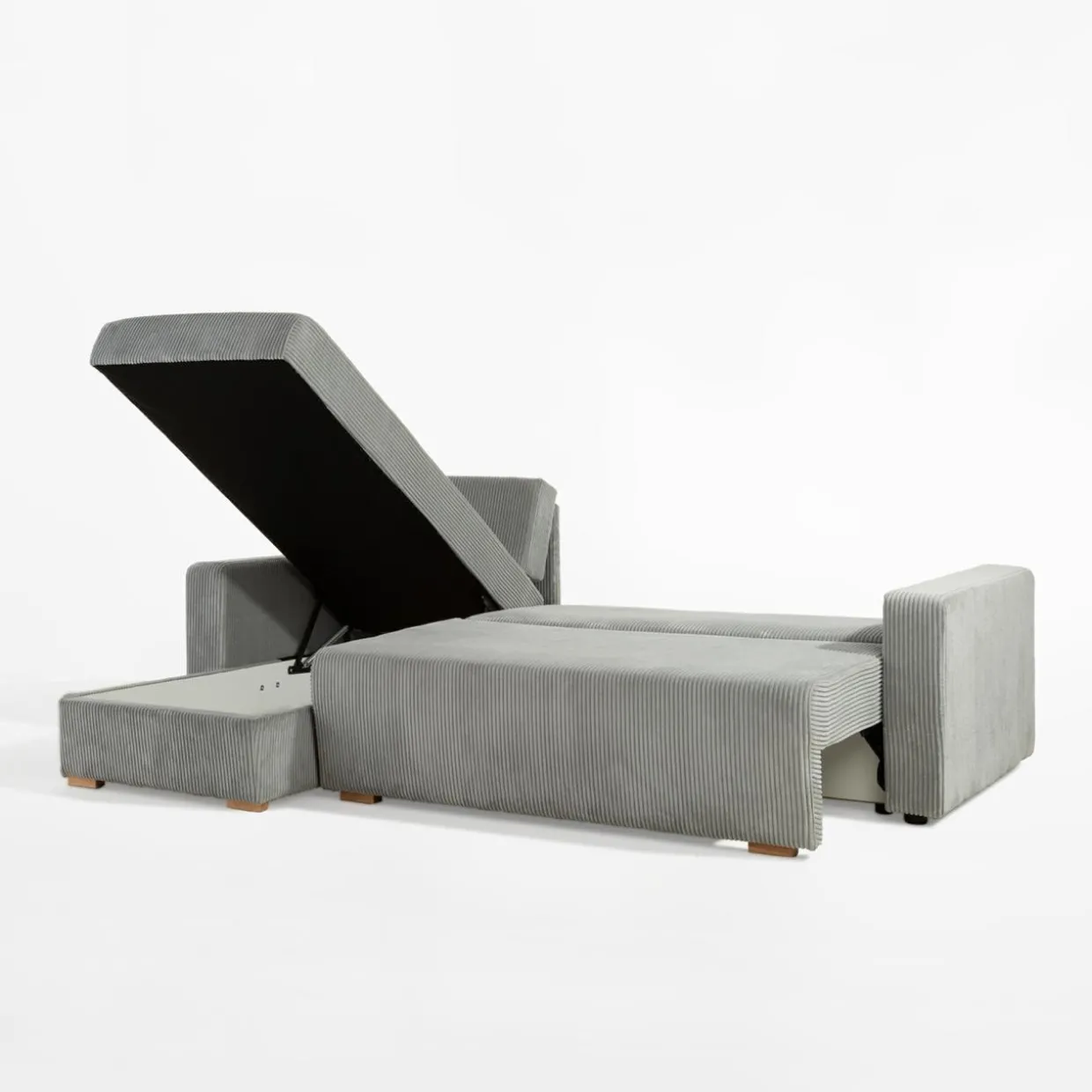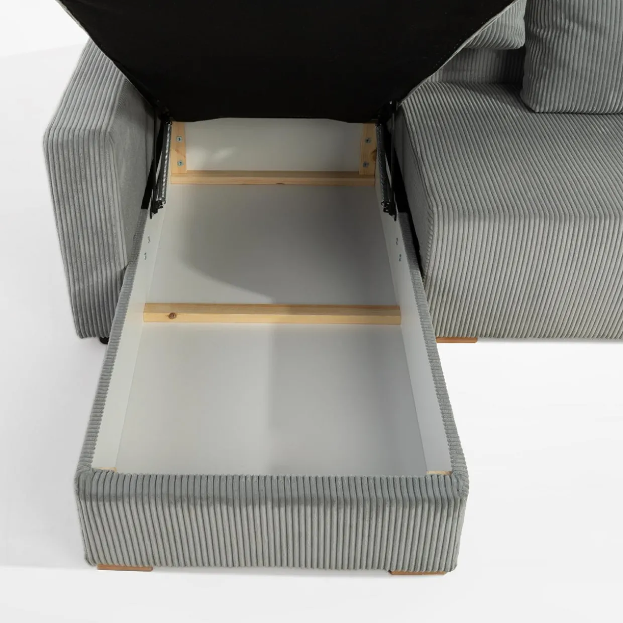 - Potrzebujesz więcej miejsca na domowe tekstylia? Narożnik posiada 2 pojemniki, które dadzą Ci większa przestrzeń do przechowywania pościeli, koca i poduszek – odtąd wszystko znajdzie swoje miejsce.