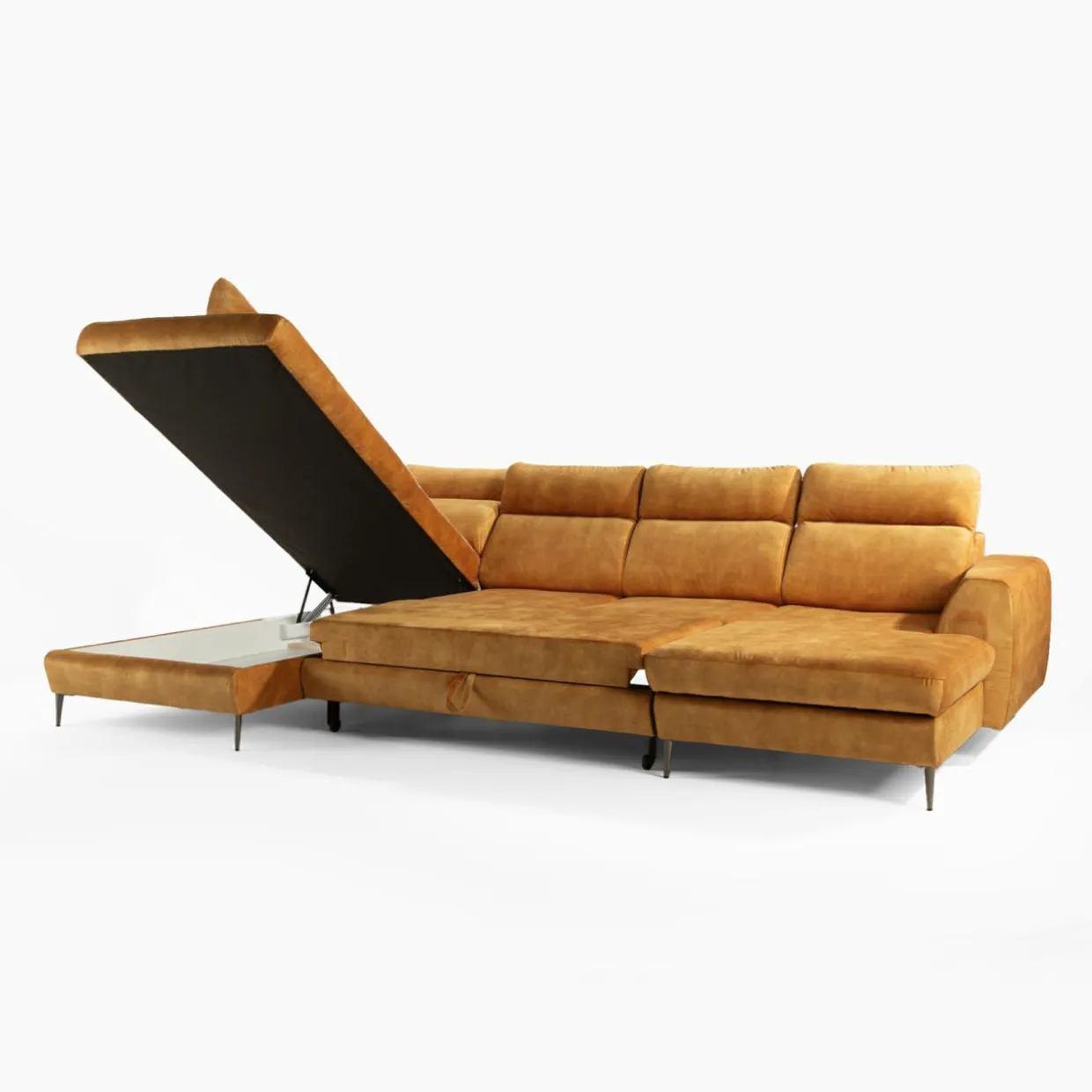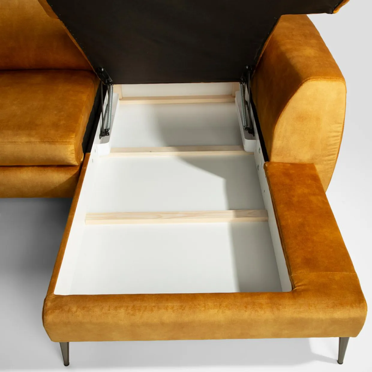 - 2 pojemniki to więcej przestrzeni do przechowywania pościeli i innych domowych tekstyliów. Pojemniki znajdują się w leżankach, przez co będziesz mieć do niech dostęp nawet po rozłożeniu narożnika.