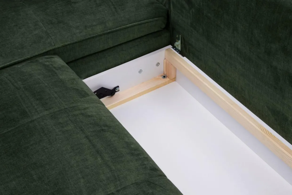 - Pod siedziskiem znajduje się pojemnik na pościel.