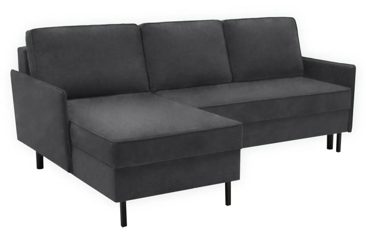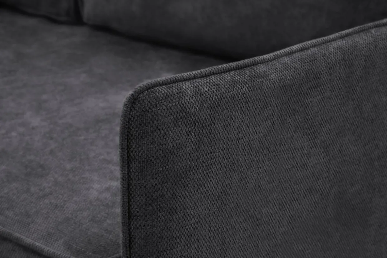 - Ciemnoszary kolor i metalowe, czarne nóżki sprawiają, że narożnik dobrze zaprezentuje się w loftowej aranżacji w otoczeniu drewna o ciepłym odcieniu i czarnych dodatków.