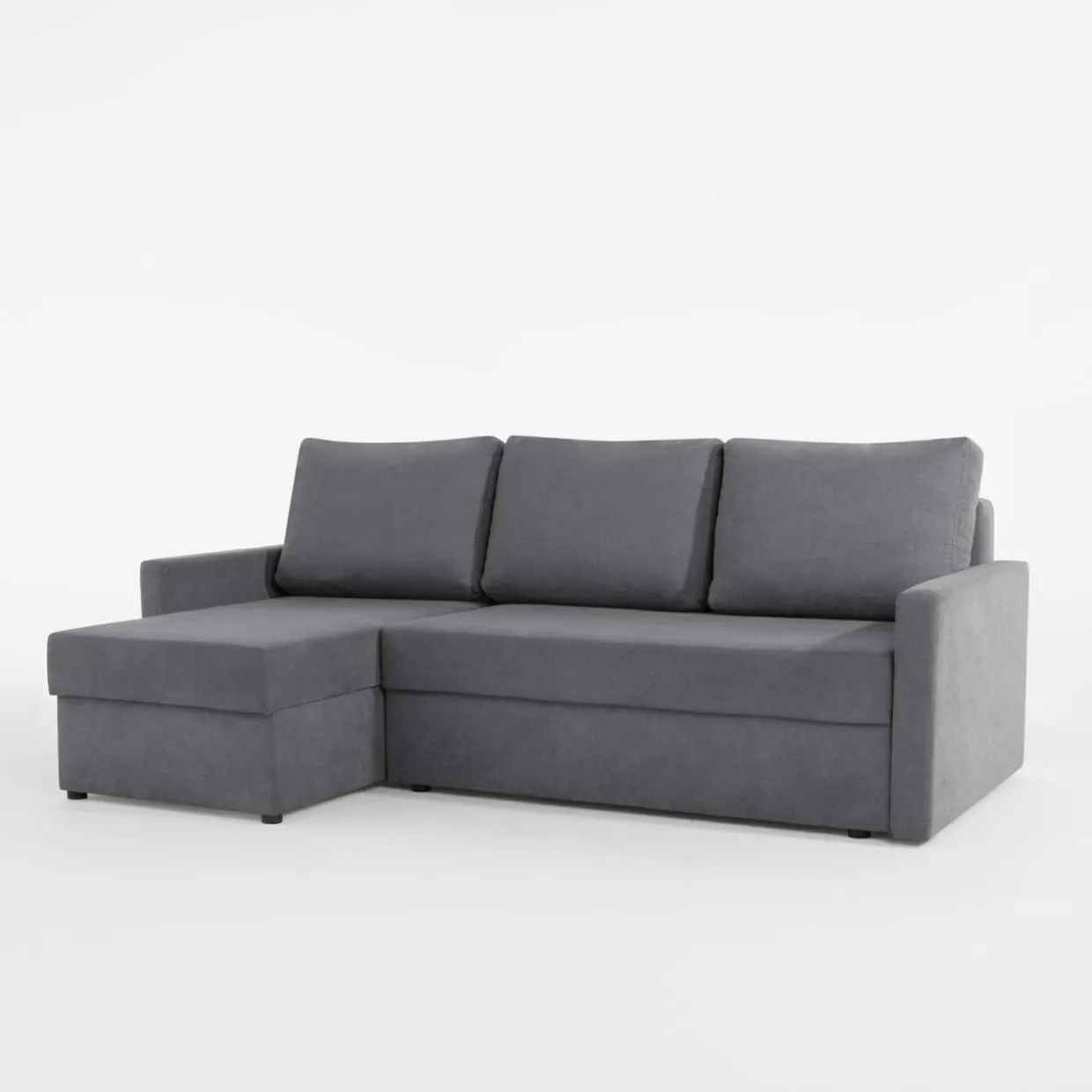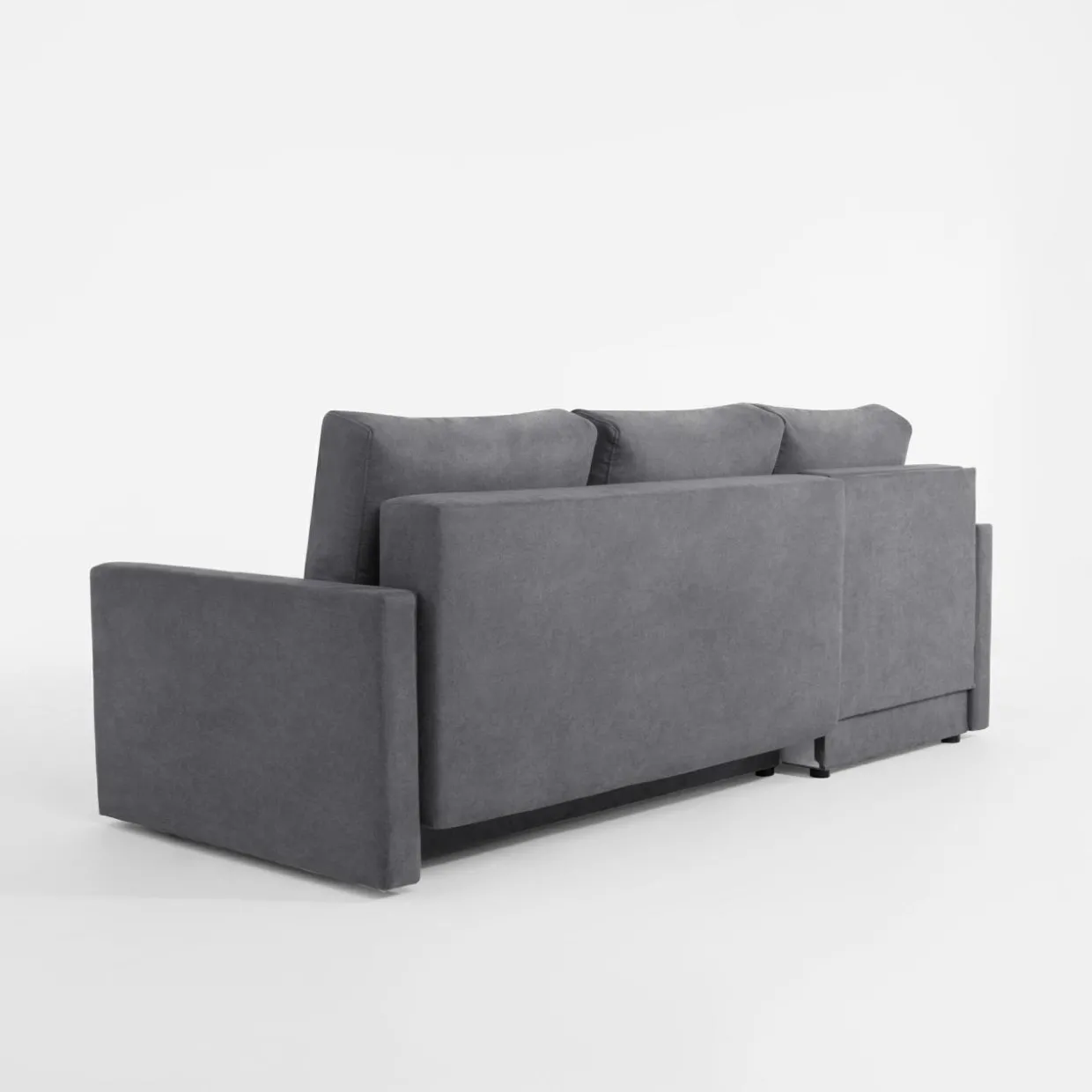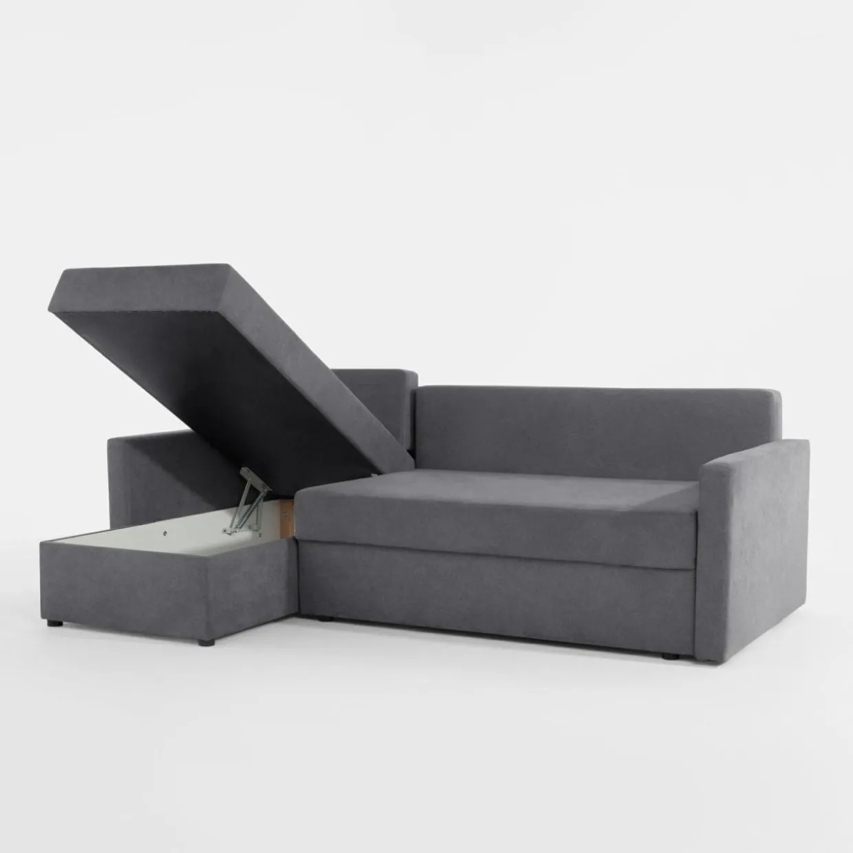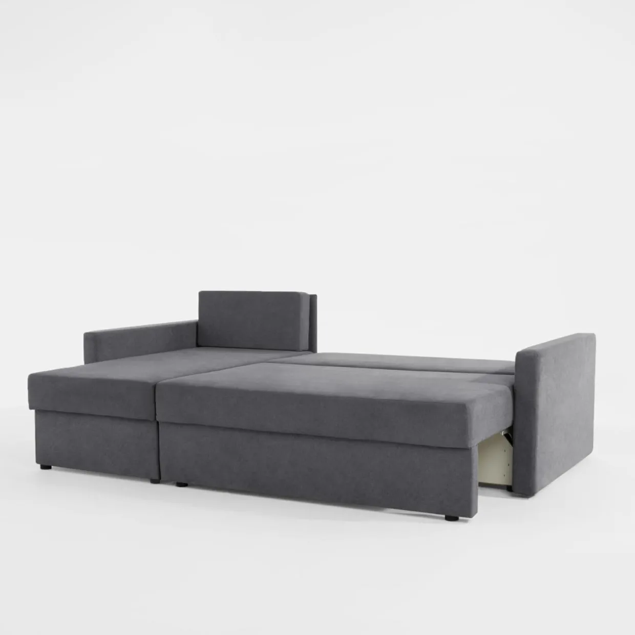 - 1 pojemnik znajduje się pod siedziskiem – to idealne miejsce na pościel, bo dostaniesz się do niej podczas rozkładania narożnika.