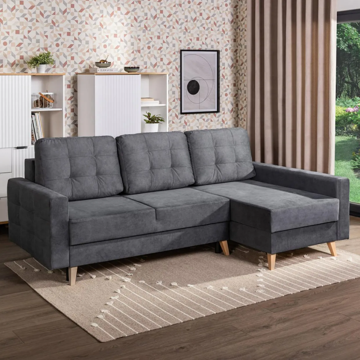 Narożnik z 2 pojemnikami szary LIVI prawy