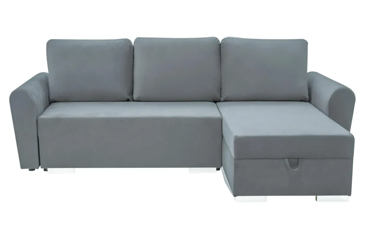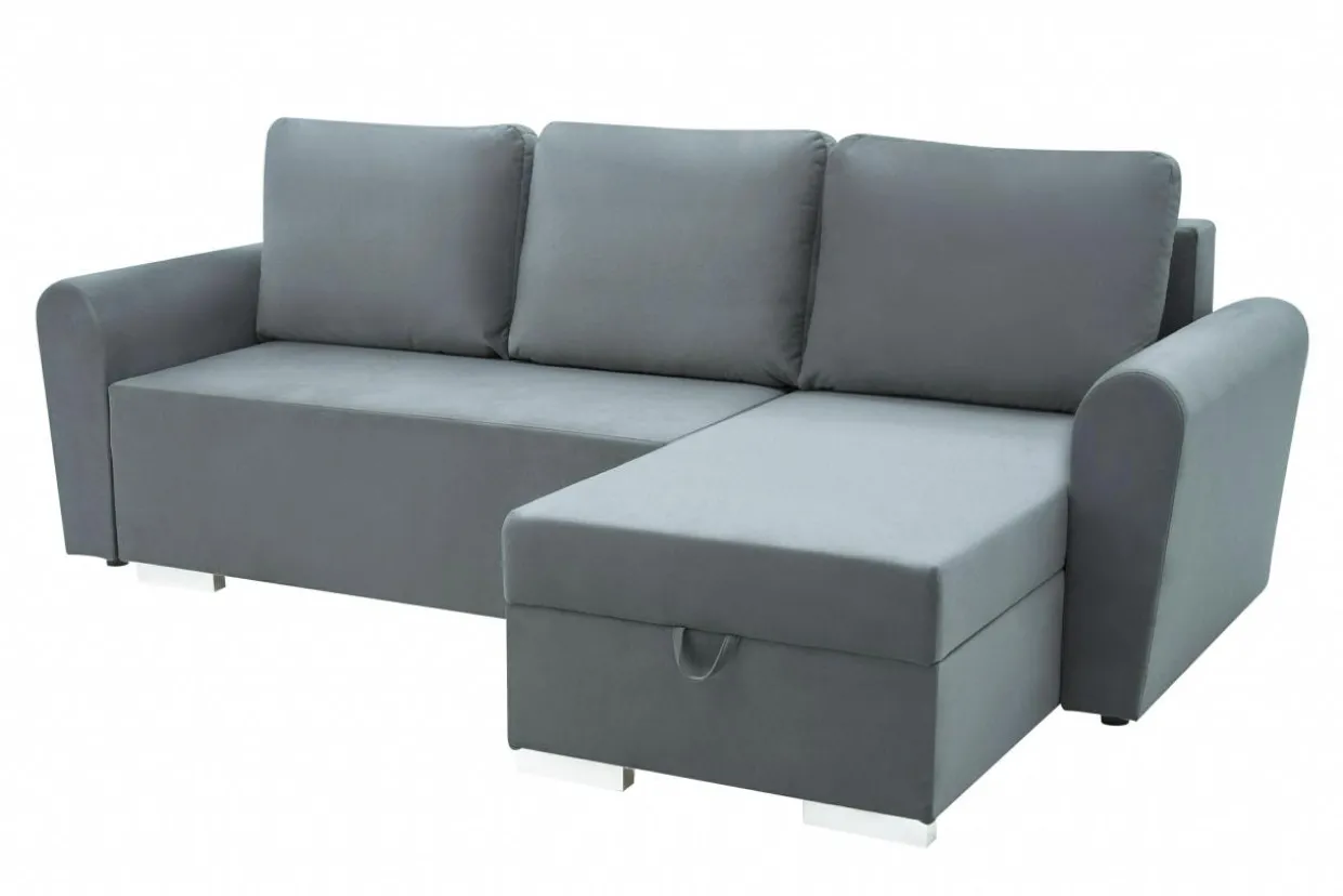 Narożnik pokryto miękkim w dotyku tkaniną JASMIN. Welurowa tkanina sprawia, że przesiadywanie na narożniku to sama przyjemność. Mebel z taką tapicerką wprowadzi odrobinę przytulności do wnętrza.