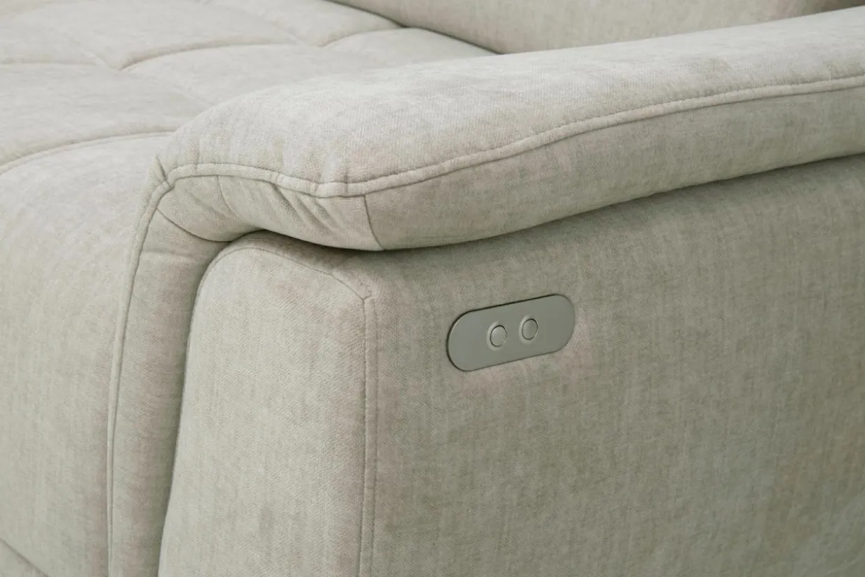 Narożnik CALVARO L ma elektrycznie regulowane siedzisko za pomocą przycisku.
