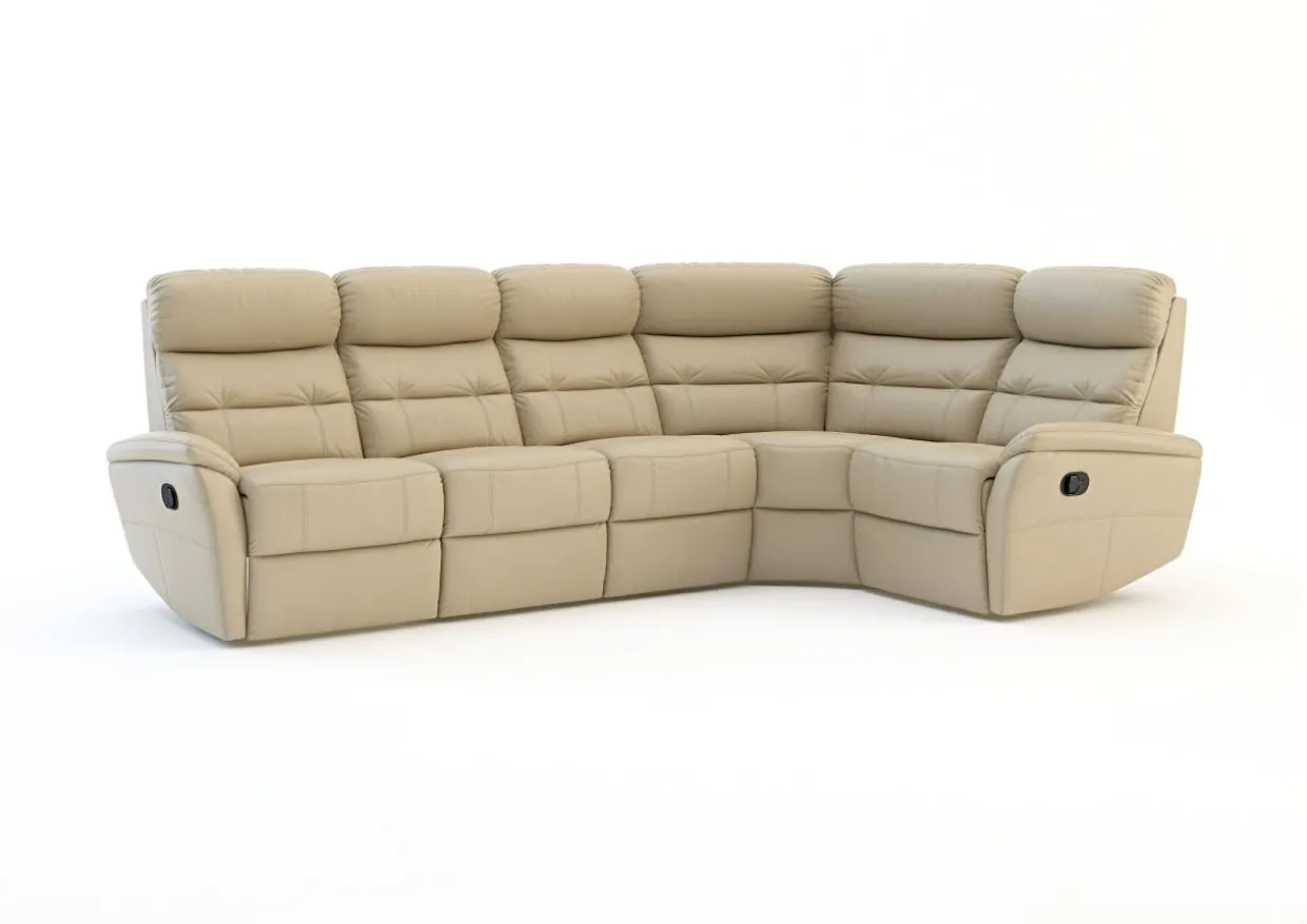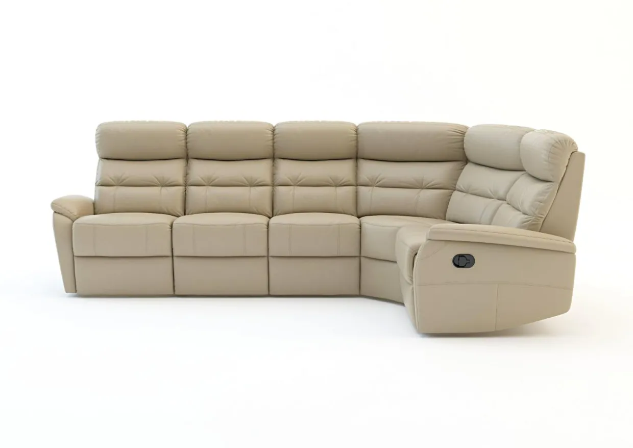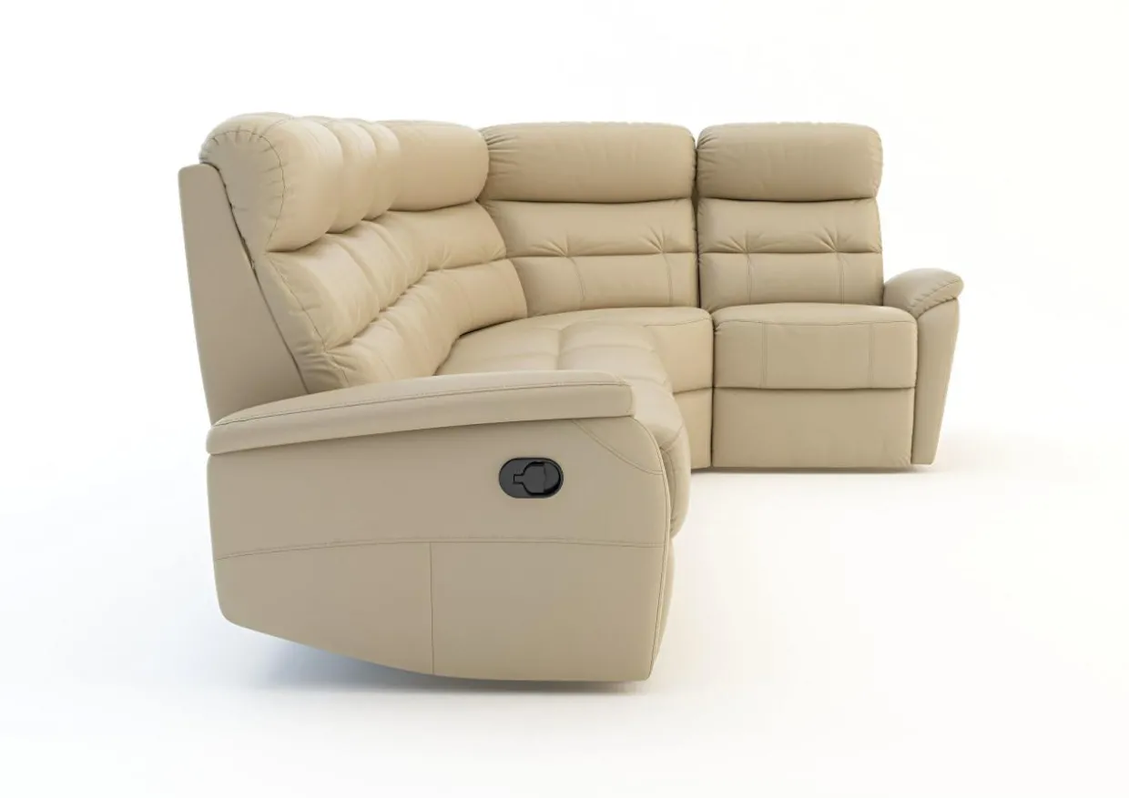 Narożnik posiada dwie niezależne funkcje relaks, z rozkładanymi podnóżkami i siedziskiem, pozwalając na zajęcie półleżącej pozycji. Narożnik wykończono w tzw. miksie, który polega na łączeniu skóry naturalnej na miejscach widocznych i narażonych na ścieranie, na które skóra jest odporna. W miejscach mniej widocznych i nie narażonych na uszkodzenia mechaniczne znajduje się skóra ekologiczna w tym samym kolorze i fakturze. Nie sposób ich odróżnić na pierwszy rzut oka, narożnik prezentuje się bardzo dobrze, a dzięki zastosowaniu miksu jest przystępniejszy cenowo.