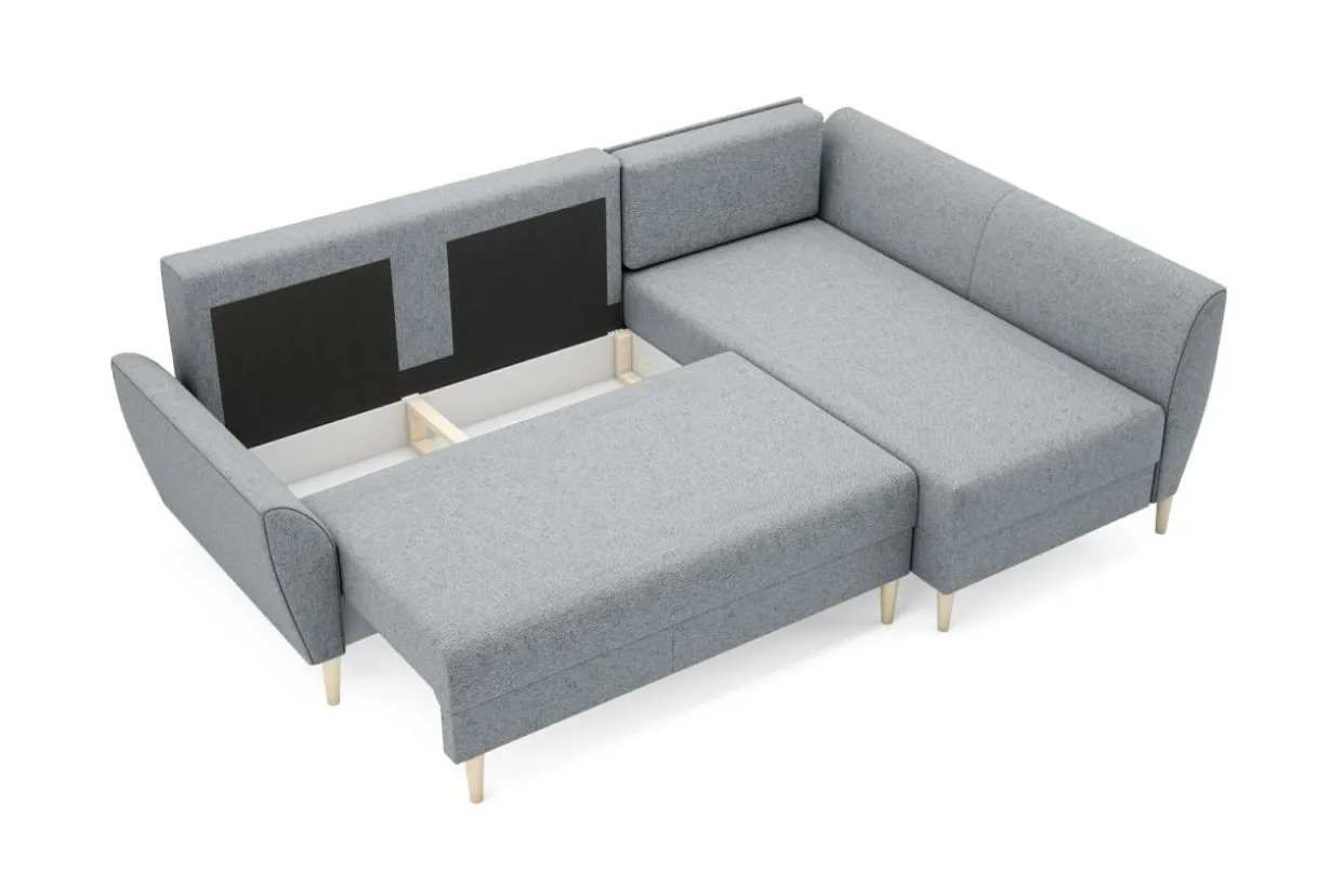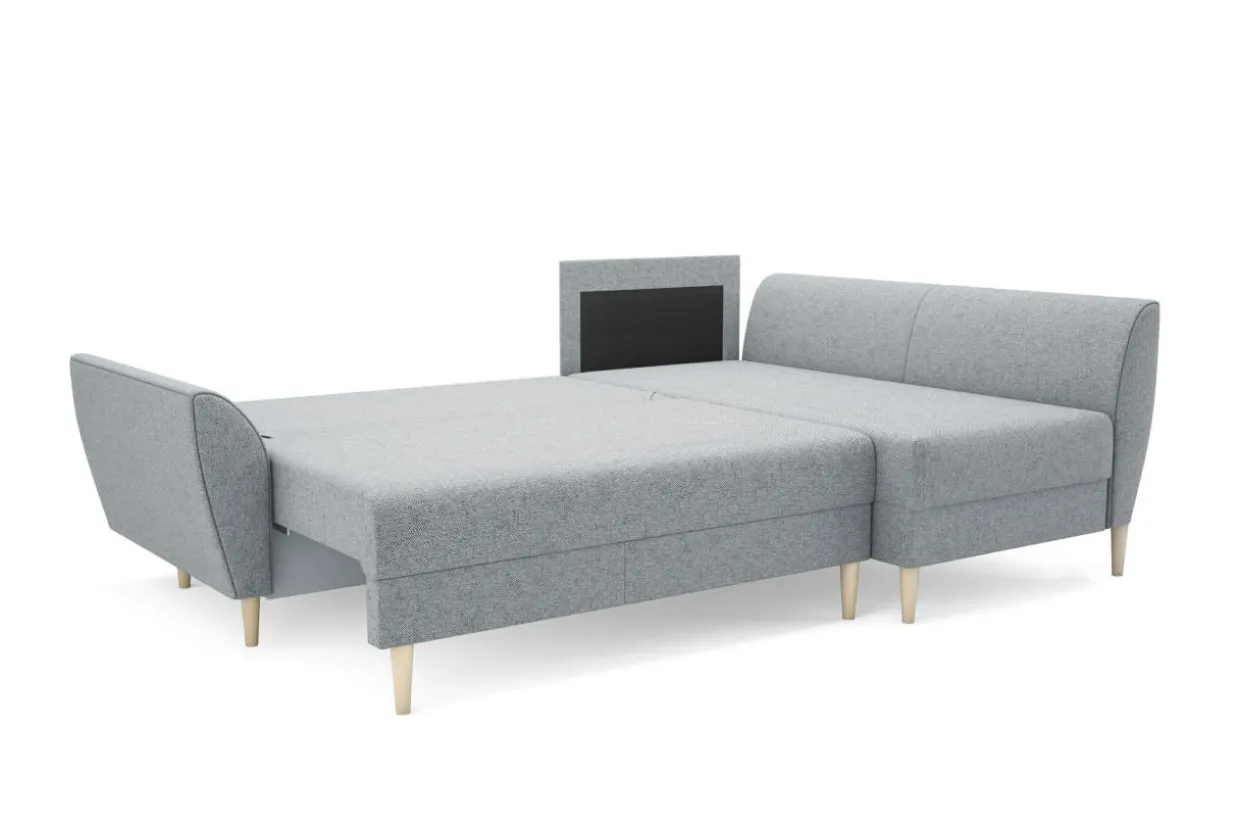 - Możesz rozłożyć narożnik za pomocą mechanizmu DL. Wystarczy unieść i wysunąć siedzisko, a w jego miejsce położyć oparcie.