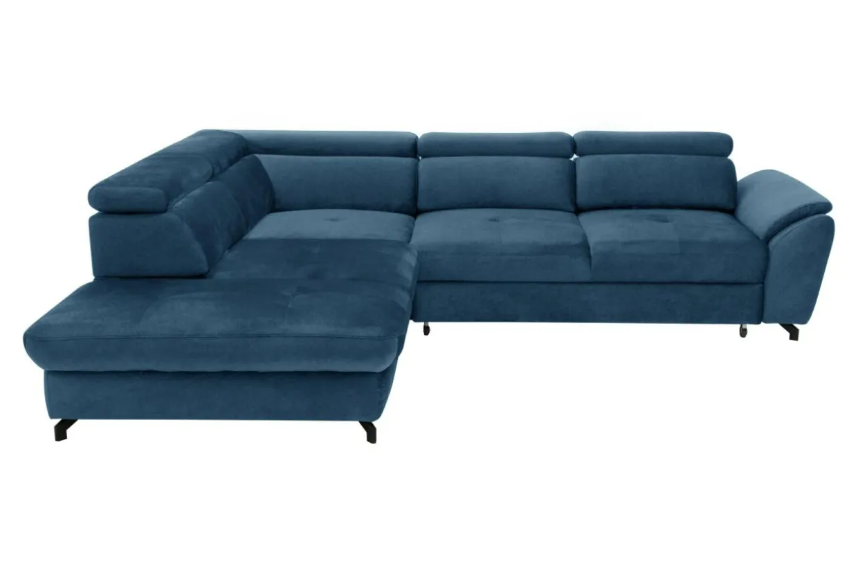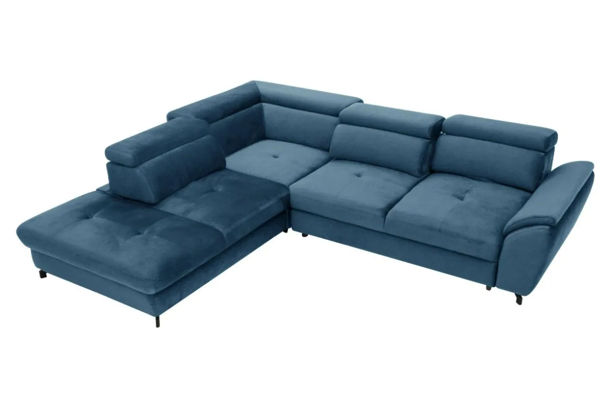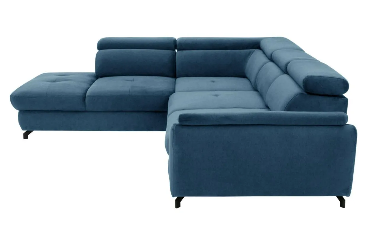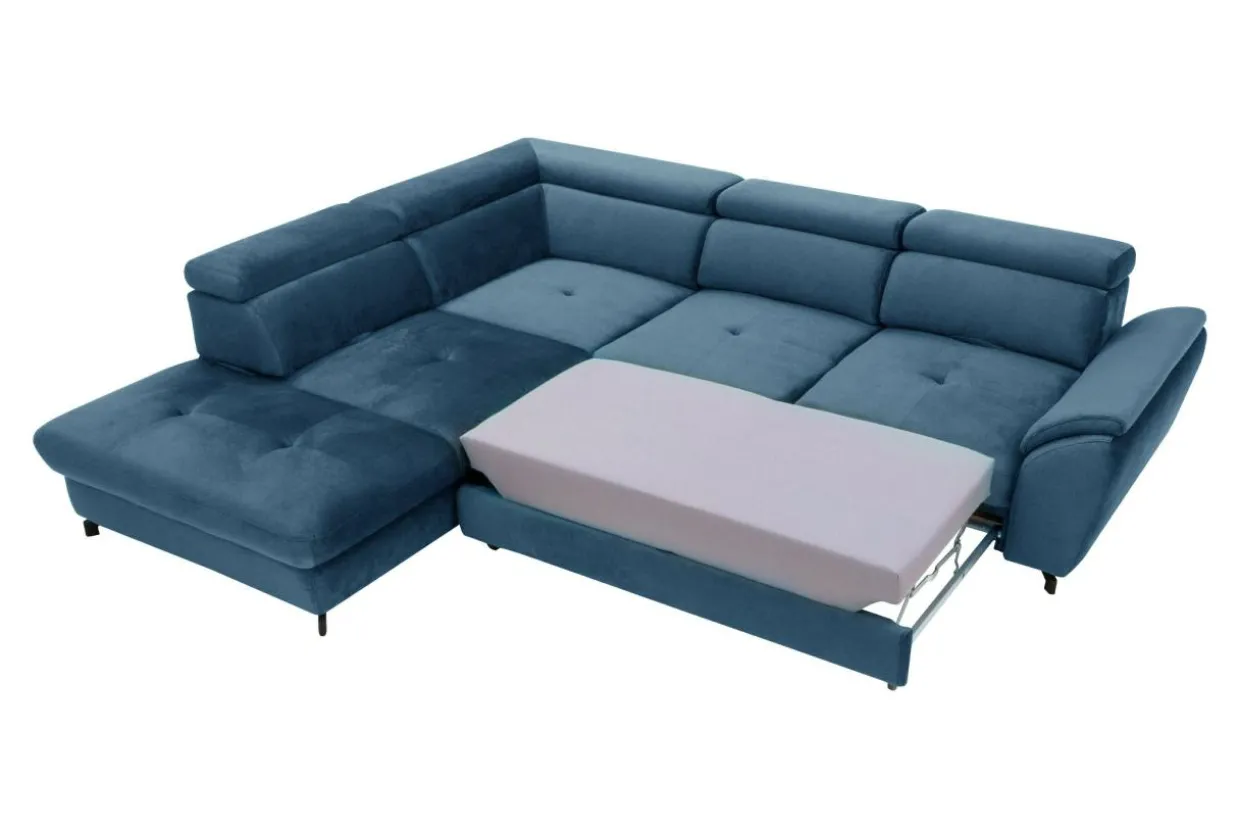 - Główna zaleta: narożnik może swobodnie stać przy ścianie, dlatego że rozkładanie nie wymaga odsuwania go.