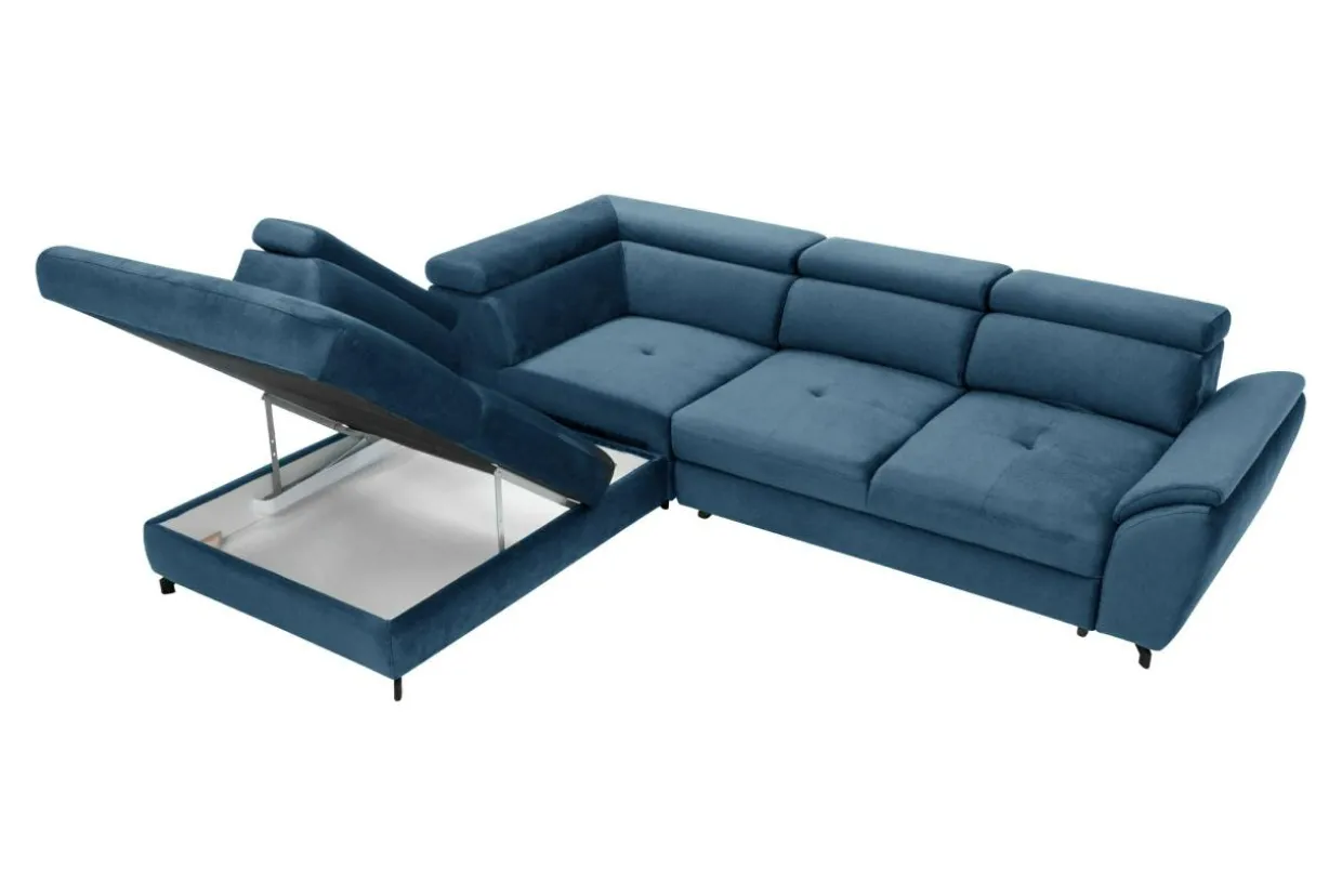- Rozkładanie: wysuń przednią część narożnika i wyciągnij schowany w środku dodatkowy element.