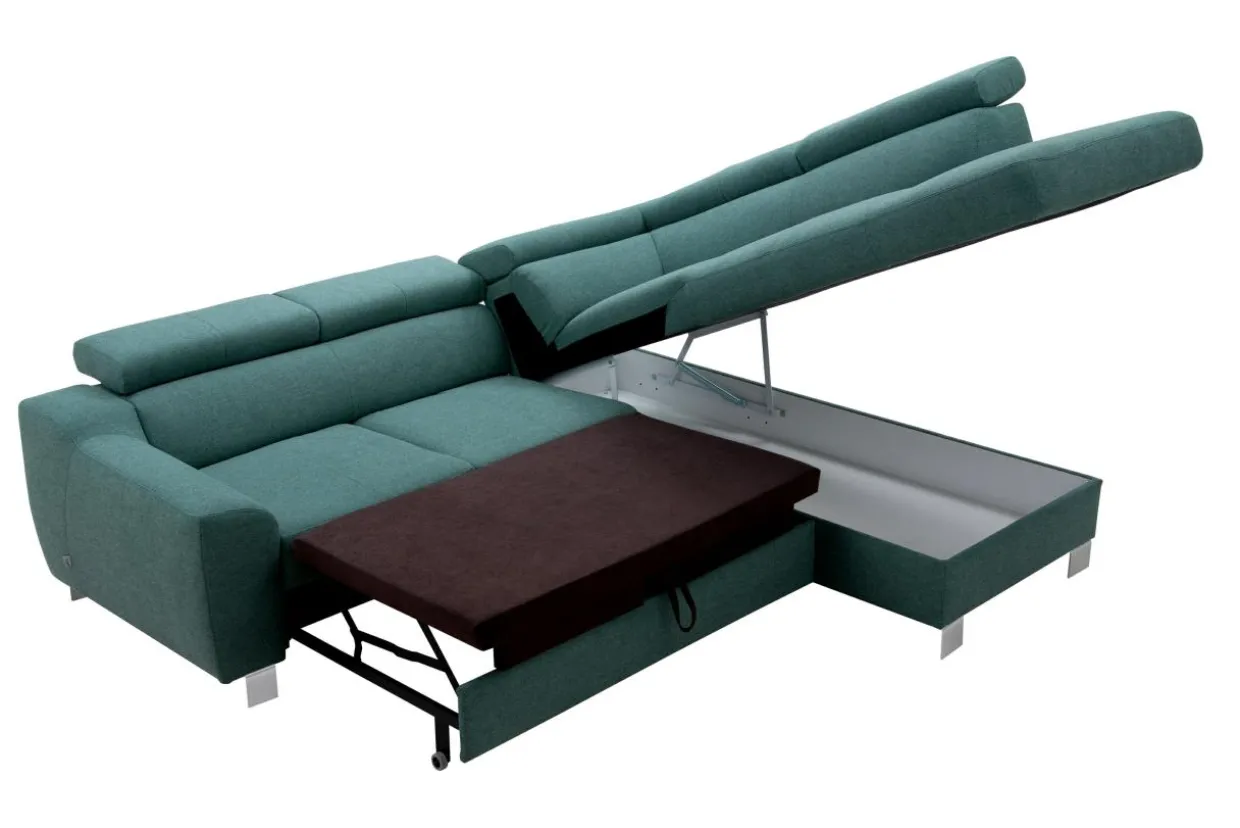 - Ten popularny mechanizm nazywa się „delfin” i pozwala rozłożyć narożnik bez konieczności odsuwania go od ściany.