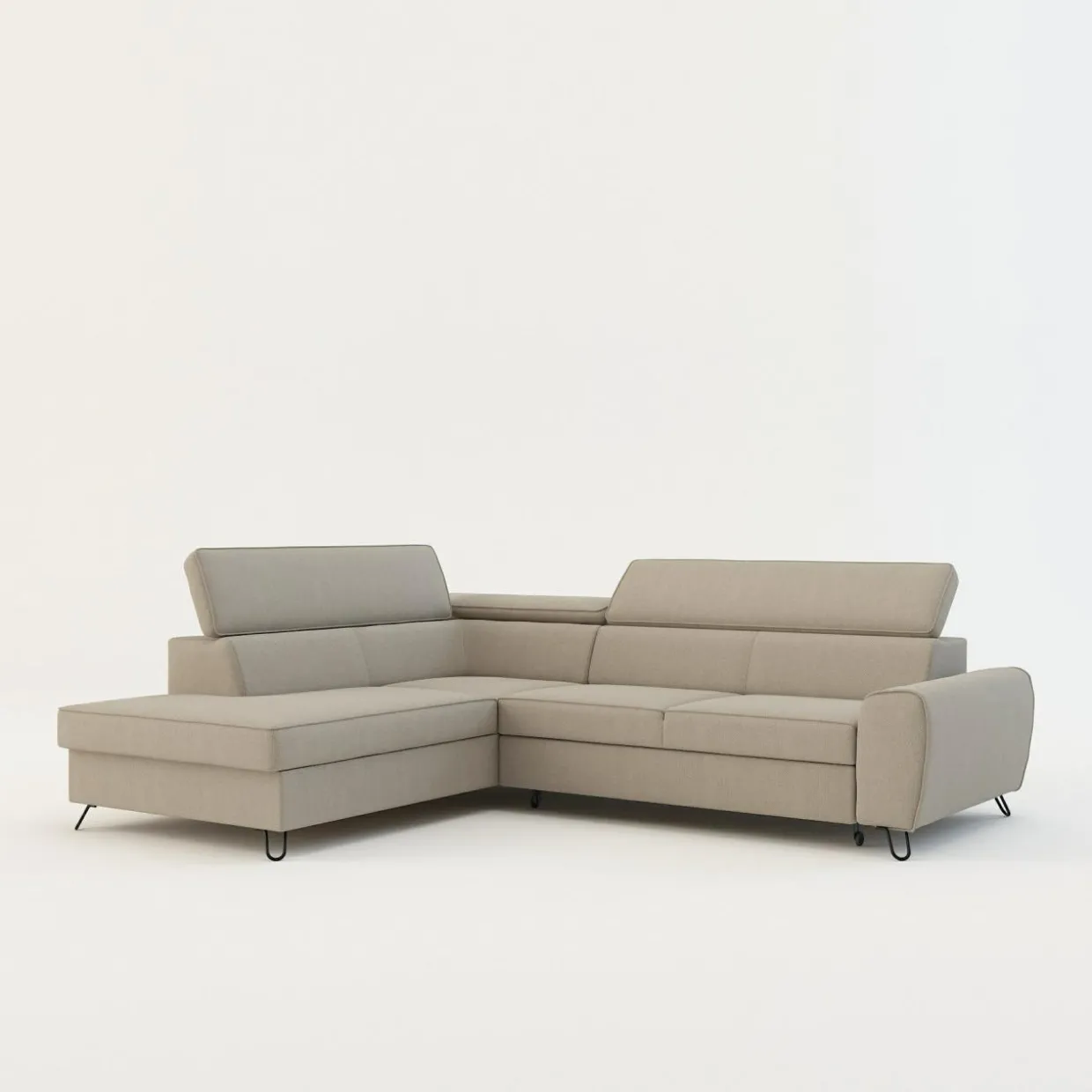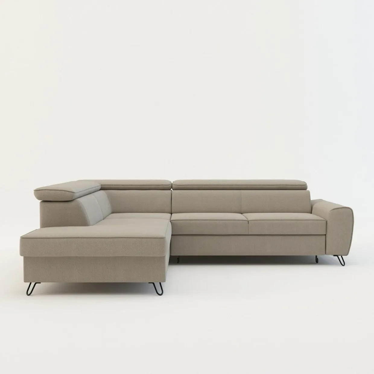 - Narożnik posiada 3 regulowane zagłówki na całej długości narożnika, dzięki czemu każdy z gości może usiąść równie komfortowo.