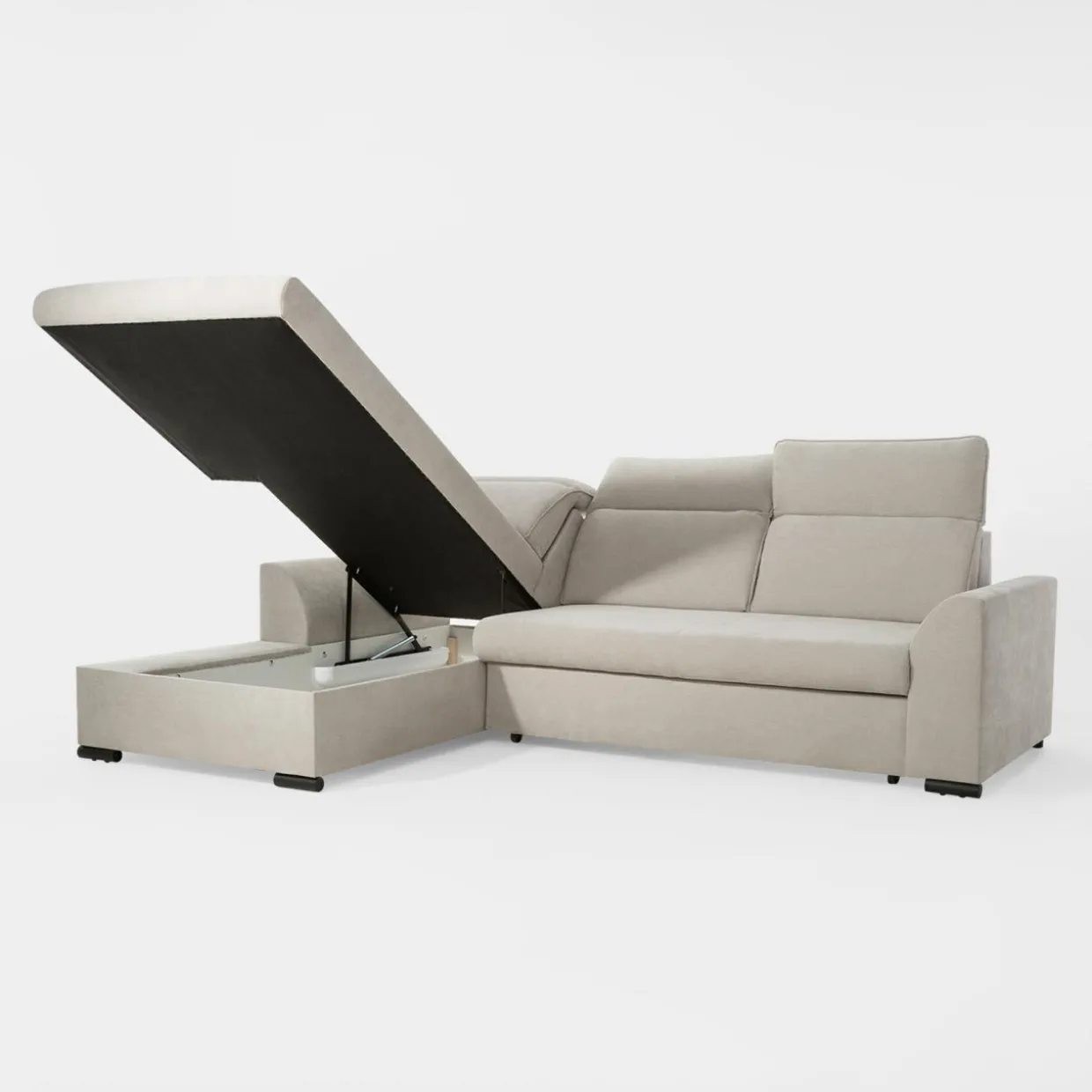 - Pojemnik w leżance będzie wygodnym miejscem do przechowywania pościeli. Będziesz mieć do niego swobodny dostęp nawet po rozłożeniu narożnika.