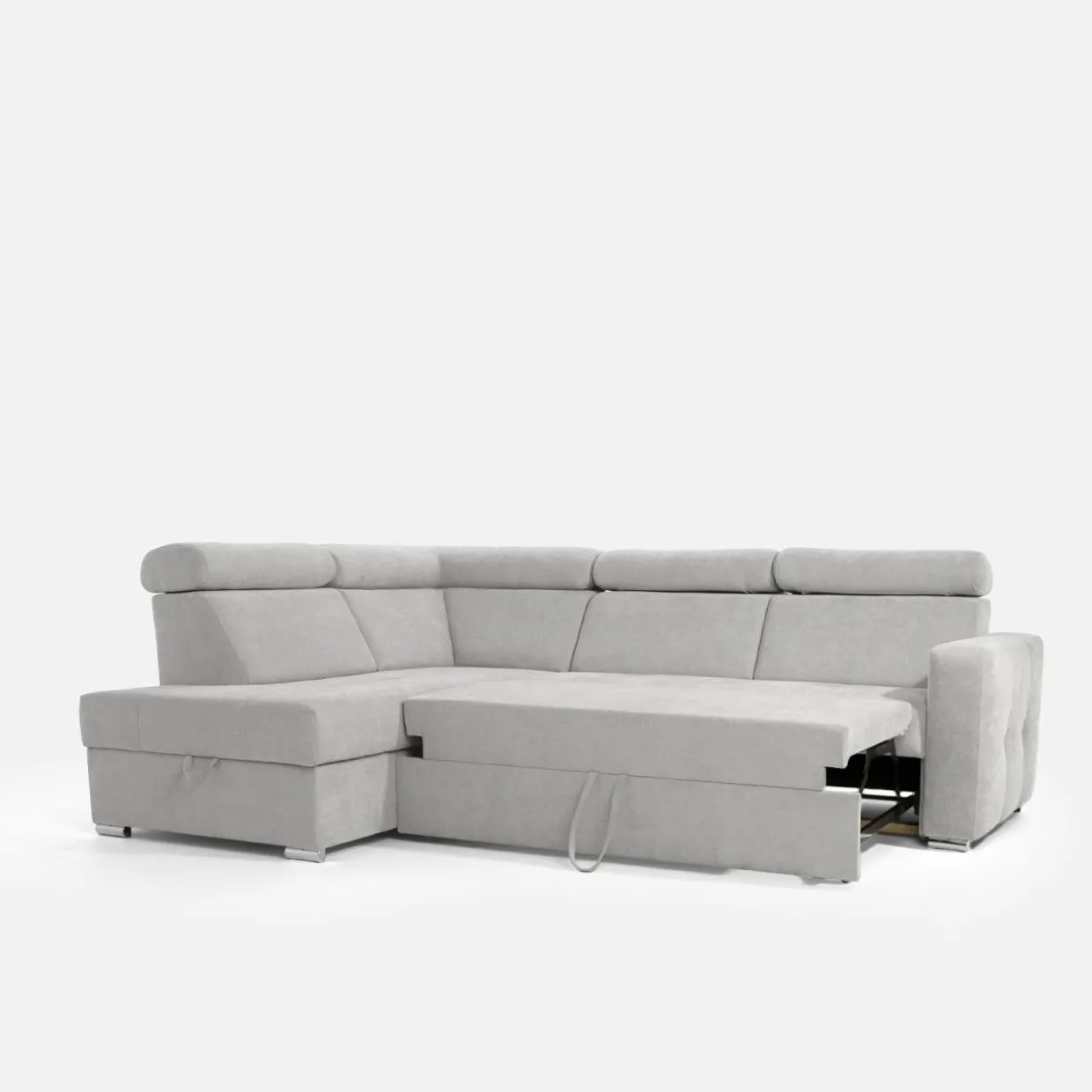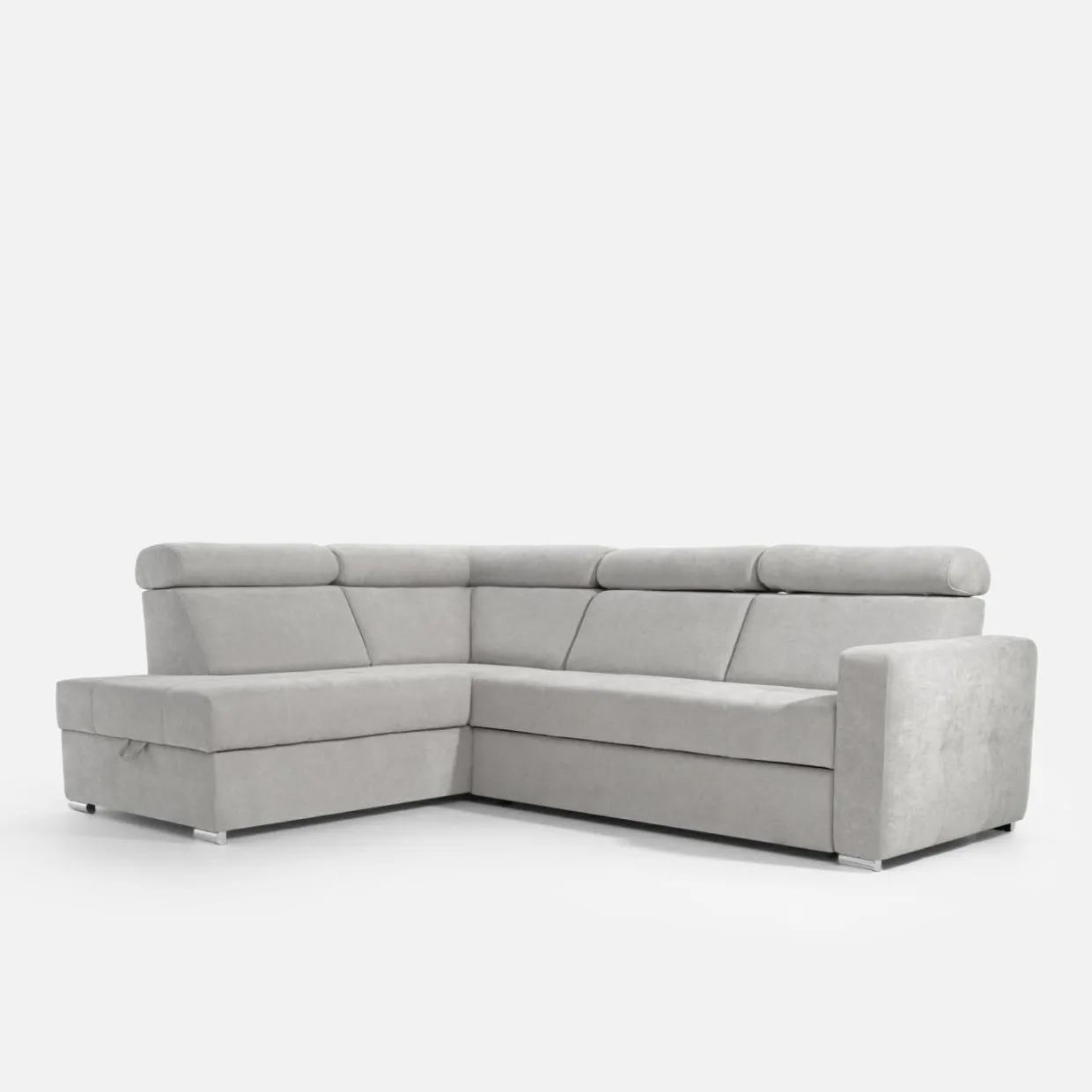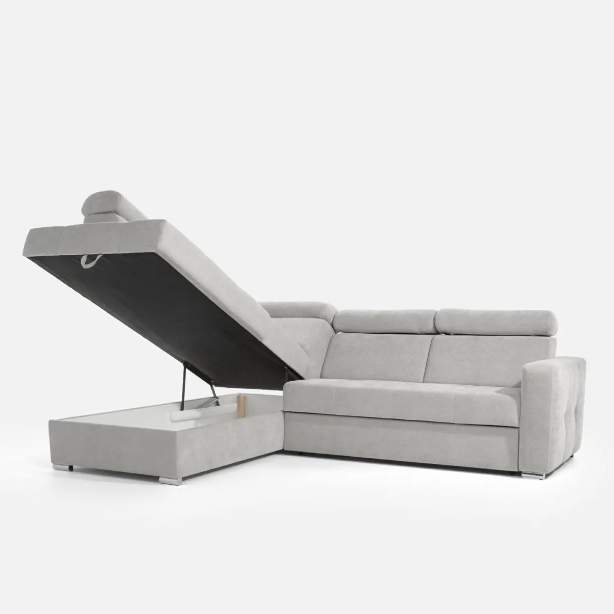 - Pojemnik w leżance da Ci przestrzeń na pościel i inne domowe tekstylia. Możesz z niego korzystać, nawet jeśli narożnik będzie rozłożony.