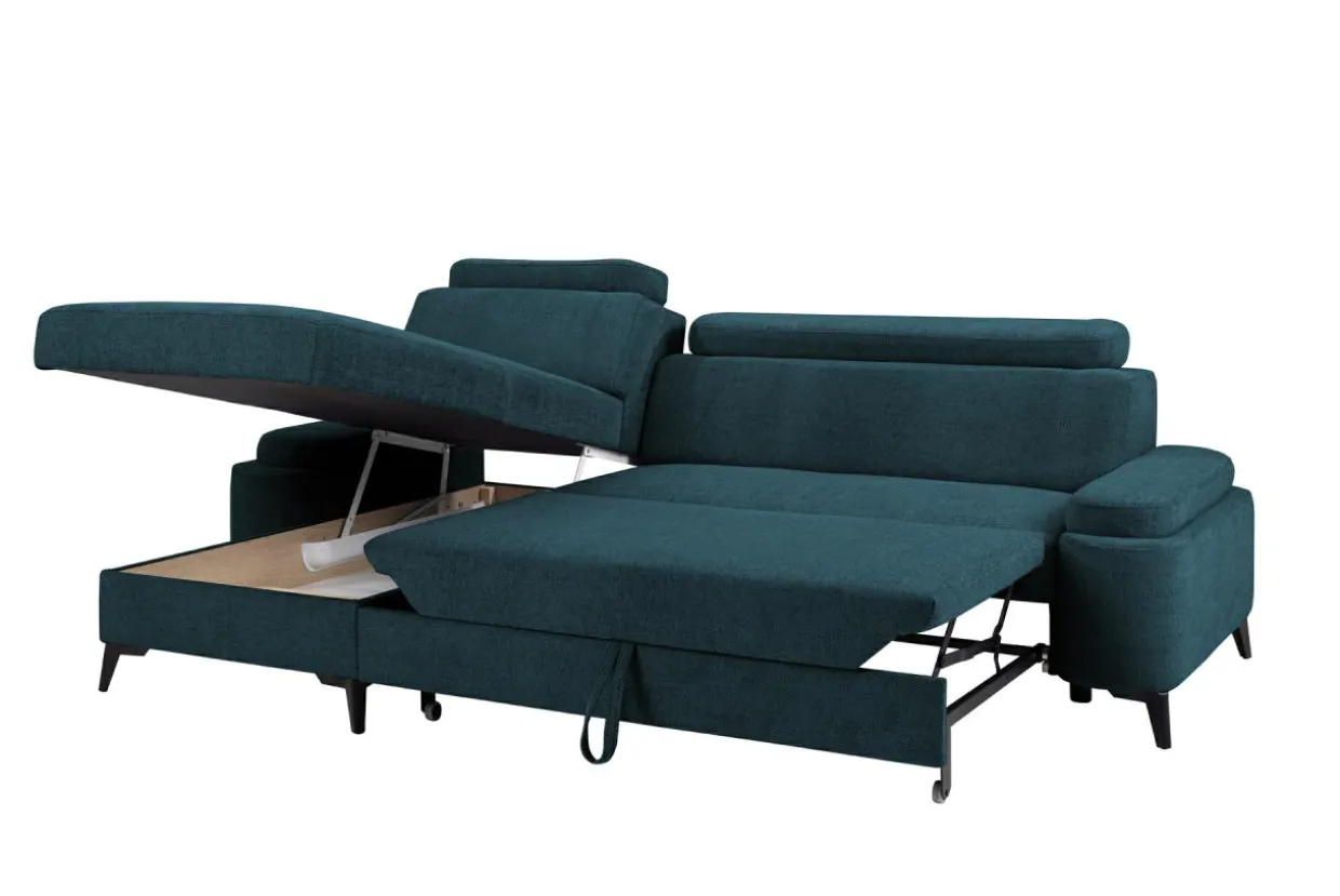 - Pojemnik w otomanie to wygodne miejsce do przechowywania dodatkowego kompletu pościeli i innych domowych tekstyliów. Możesz z niego korzystać, nawet gdy narożnik będzie rozłożony.
