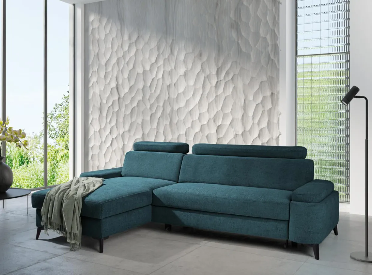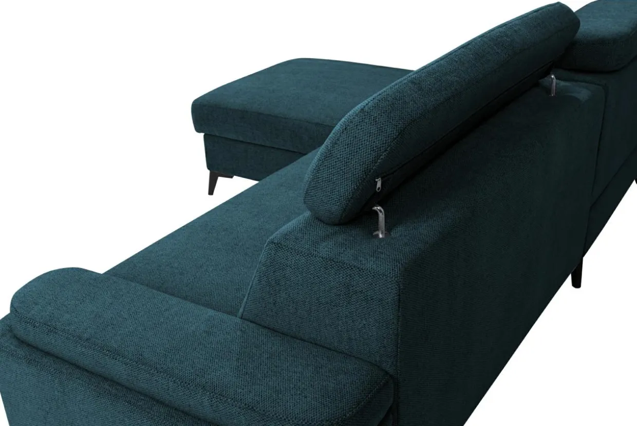 - Narożnik posiada 2 regulowane zagłówki, które dopasujesz do wzrostu Twoich gości. Nawet wysokie osoby wygodnie rozgoszczą się w Twoim salonie – wystarczy podnieść zagłówek.