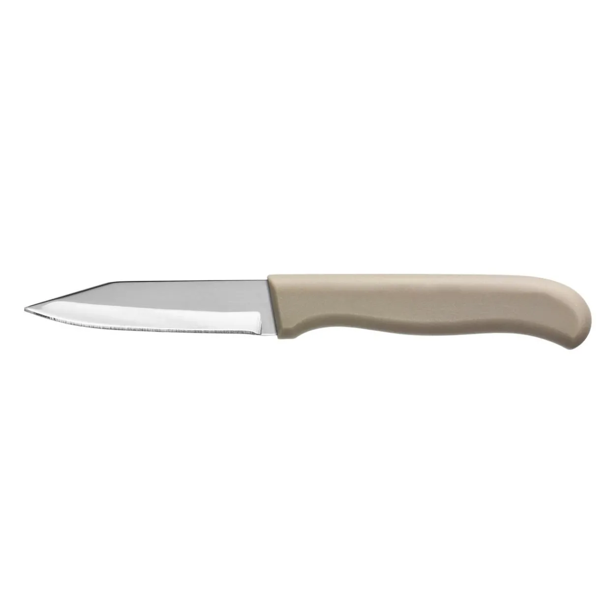 Praktyczny nóż do obierania i krojenia warzyw oraz owoców. Ostrze wykonane jest z wysokiej jakości stali nierdzewnej, a wygodę użytkowania poprawia rękojeść wykonana z trwałego tworzywa sztucznego. Długość ostrza 8 cm.