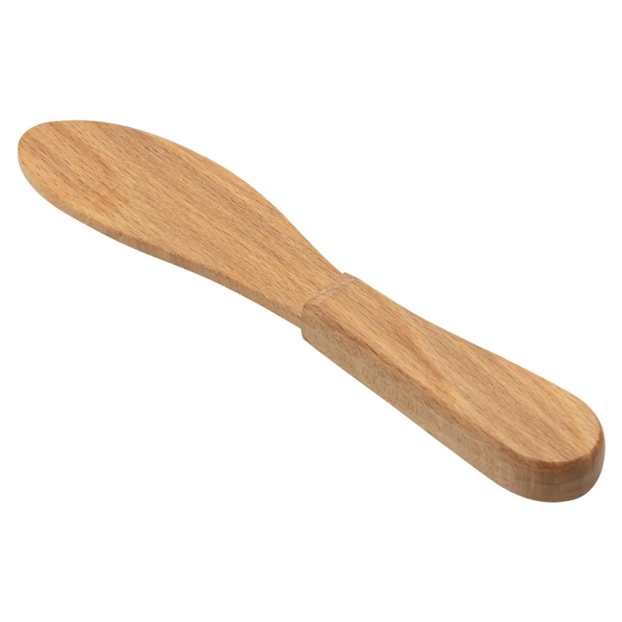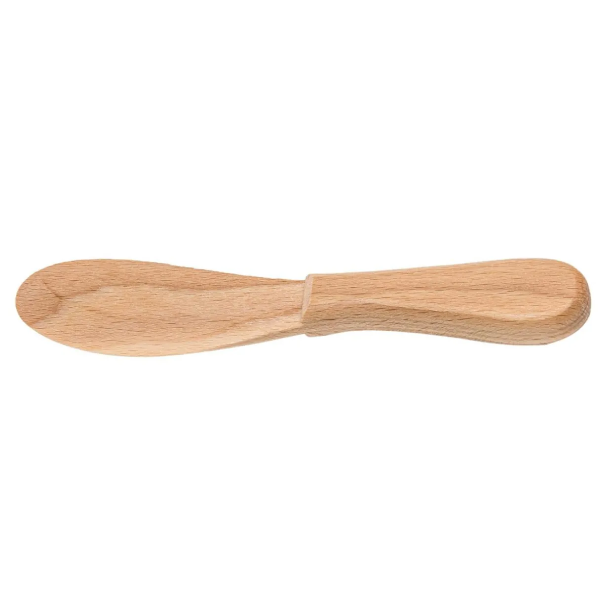Praktyczny nożyk wykonany z parzonego i olejowanego drewna bukowego. Posiada dużą powierzchnię ułatwiającą równomierne rozsmarowanie masła, smalcu, twarożków lub kremowych serów. Nie posiada ostrej krawędzi, jest bezpieczny dla dzieci.