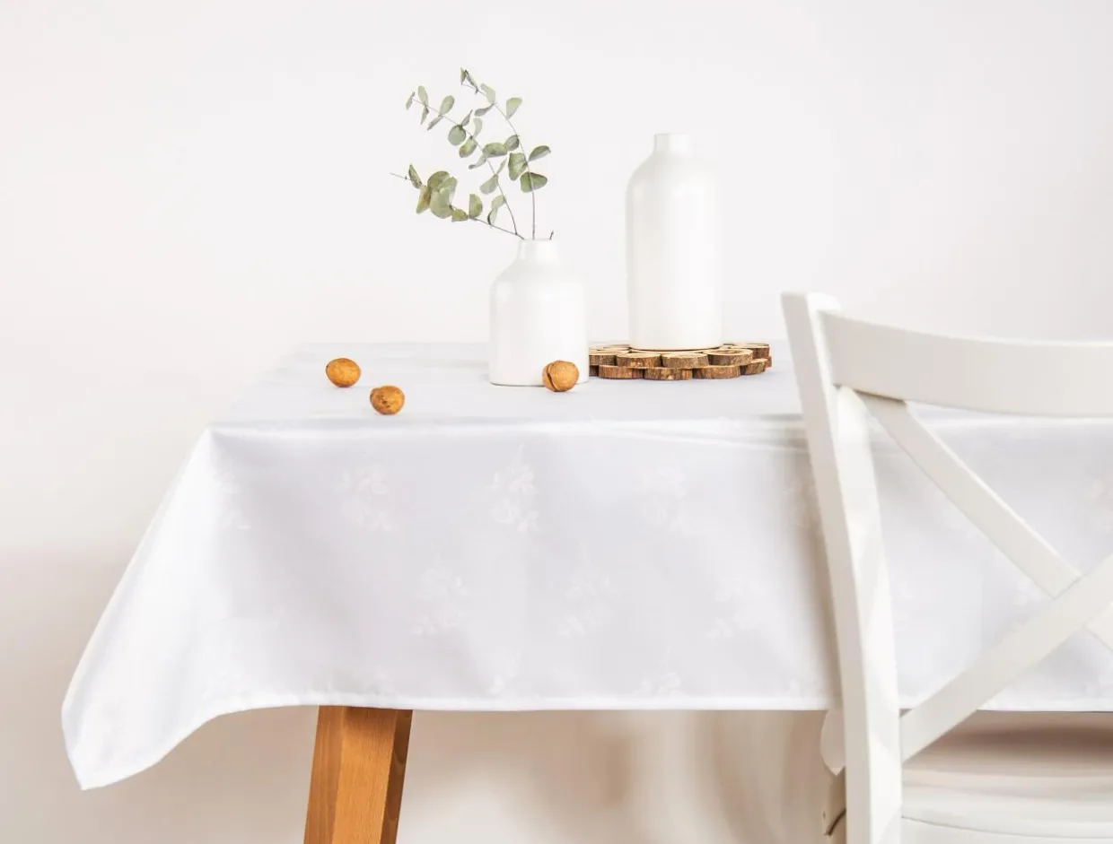 - Tkany obrus z poliestru ROSE wygląda elegancko oraz schludnie – jest odpowiedni na specjalne okazje.