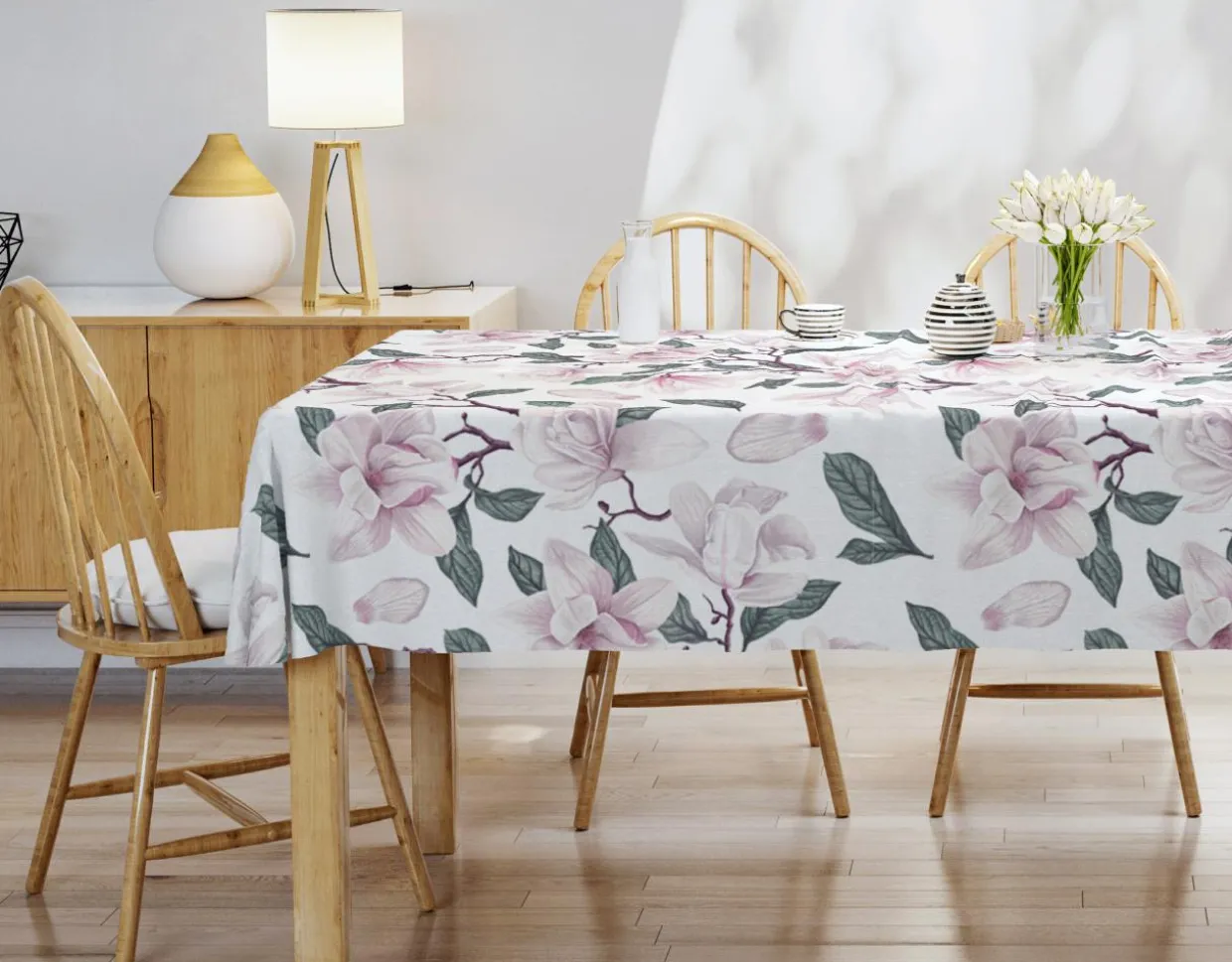 Wzór inspirowany magnoliami zachwyca dbałością o szczegóły.