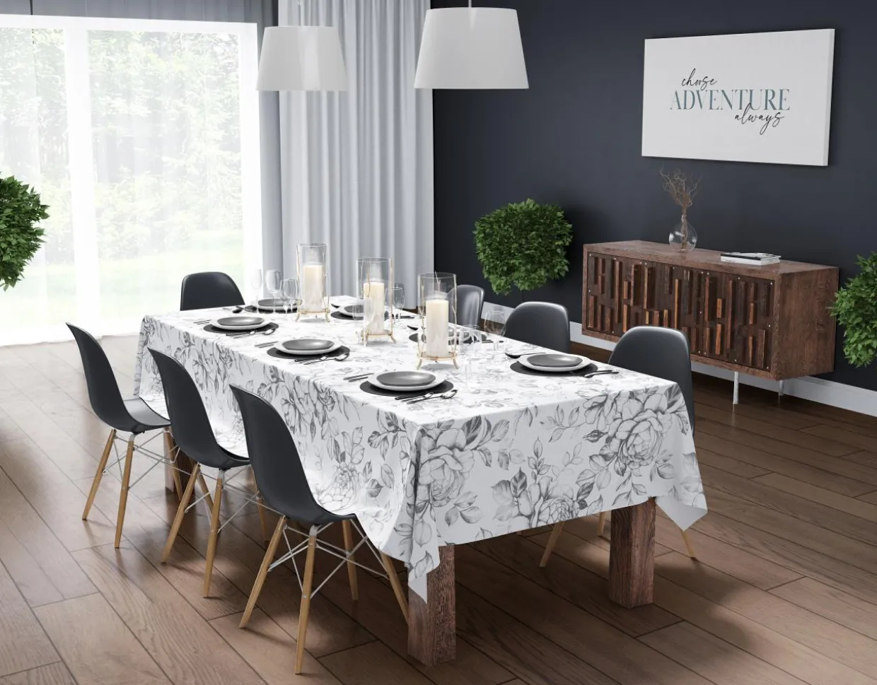 Wybierz obrus który jest wykonany jest z tkaniny bawełniano-poliestrowej.