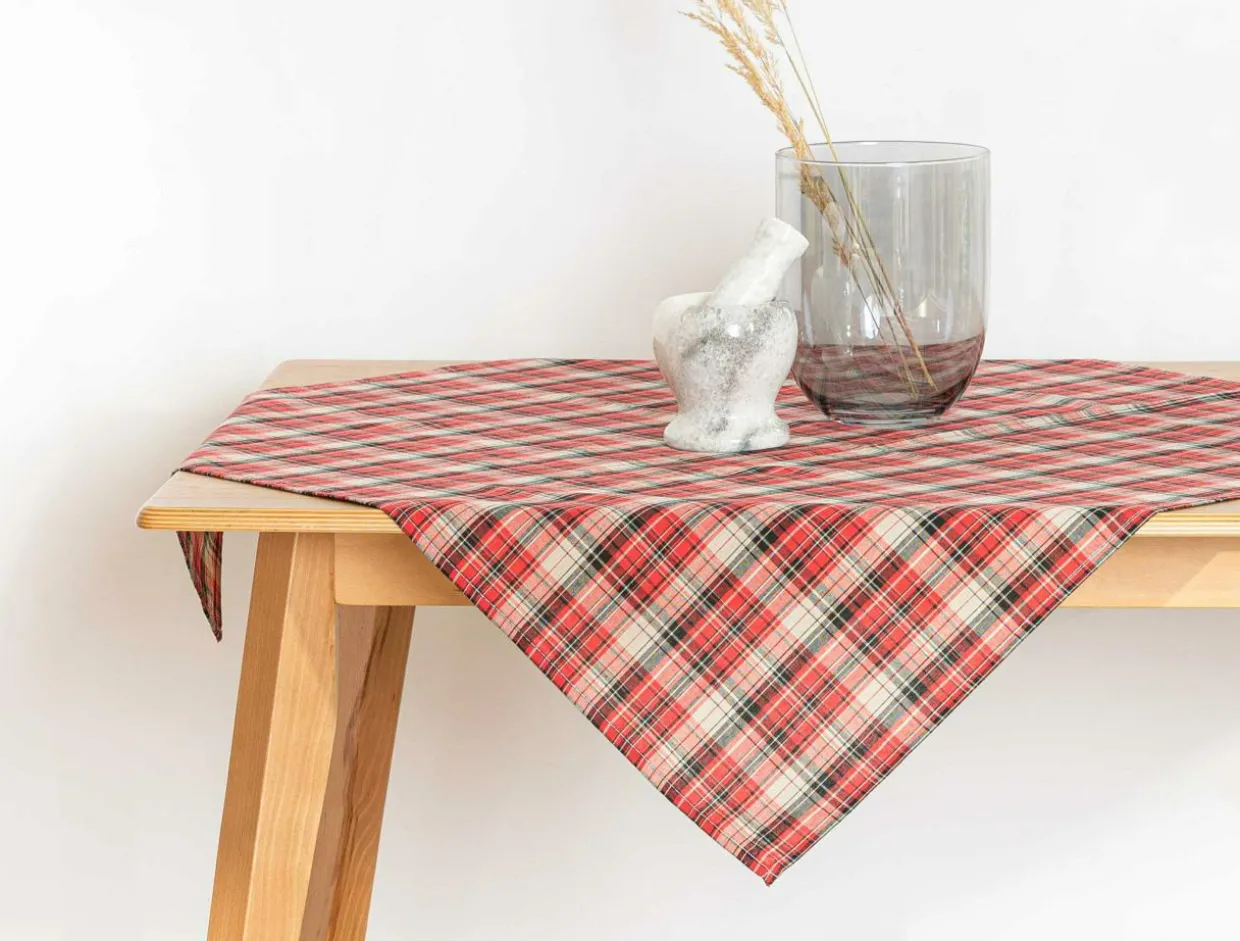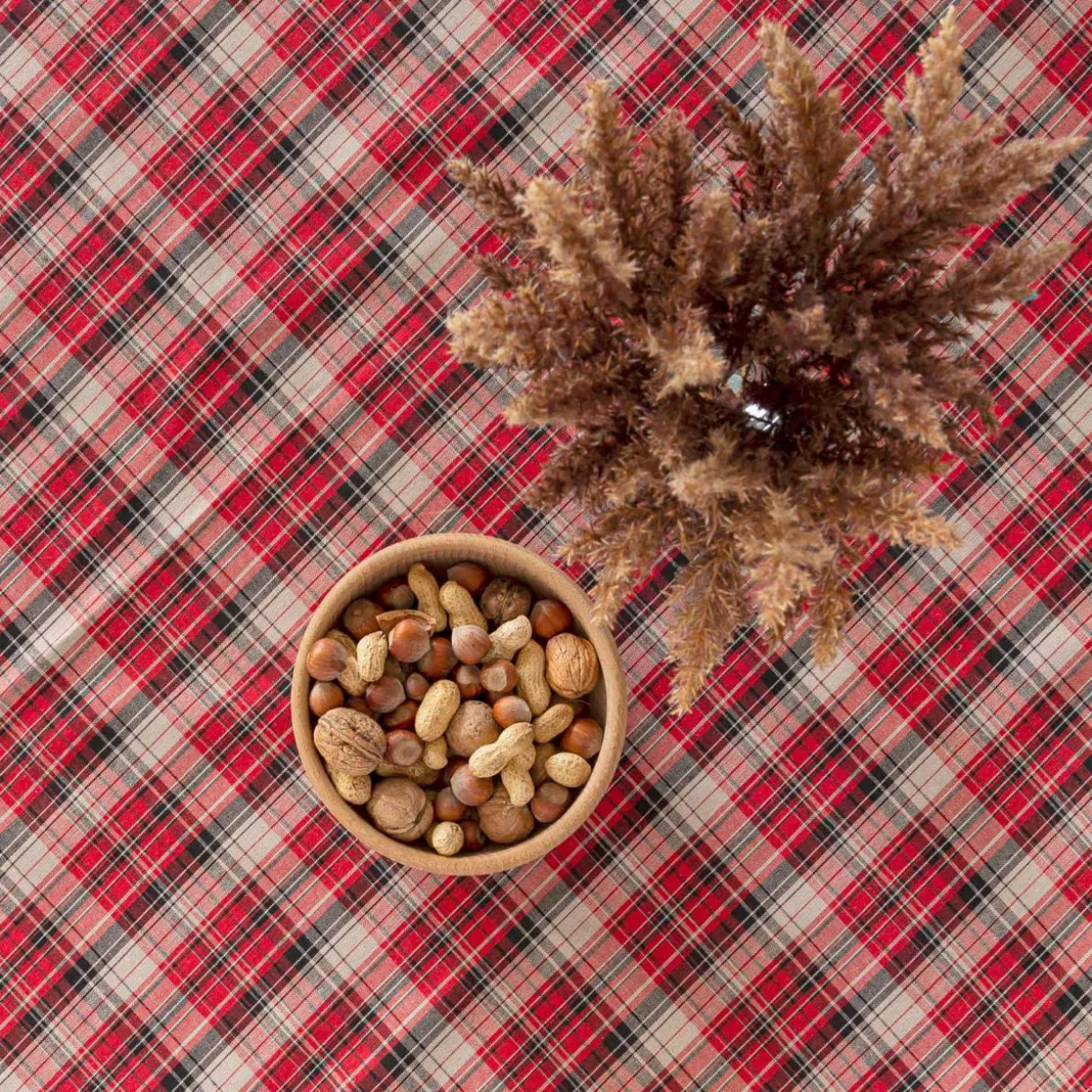 Stół w swoim salonie lub jadalni udekoruj obrusem z wzorem czerwonej, szkockiej kraty.
