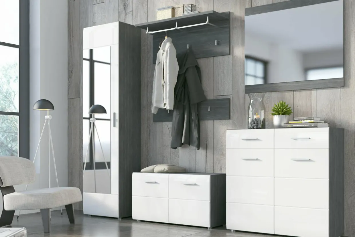 Panel SALVE pozwoli Ci urządzić w przedpokoju strefę do przechowywania i szykowania ubrań.
