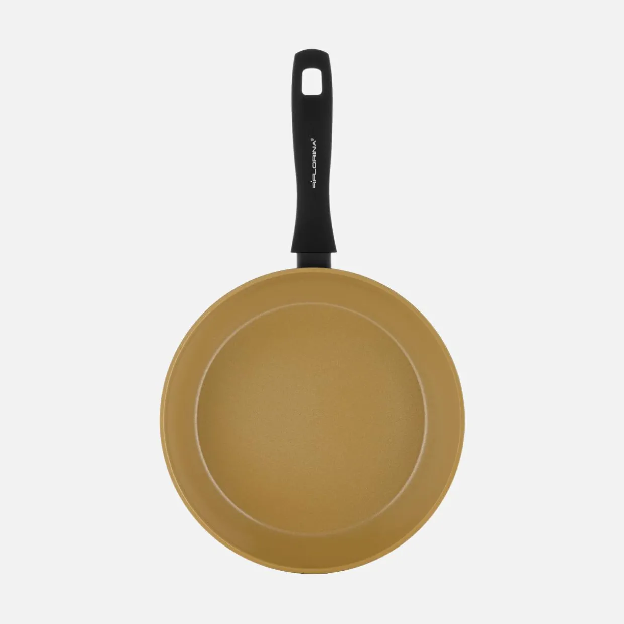 Patelnia AmVegan z kutego aluminium posiada nieprzywierającą powłokę ceramiczną o oliwkowym odcieniu – smażenie potraw stanie się szybsze oraz zdrowsze.