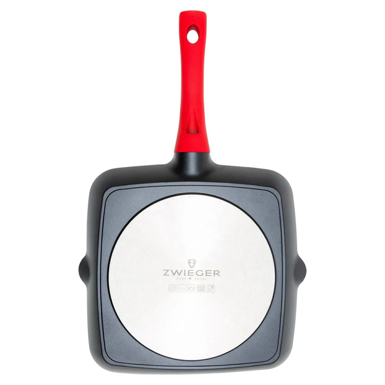 - Wewnętrzną stronę patelni pokrywa innowacyjna, odporna na zarysowania, 3-warstwowa, nieprzywierająca powłoka Greblon C3+ non-stick firmy WEILBURGER;