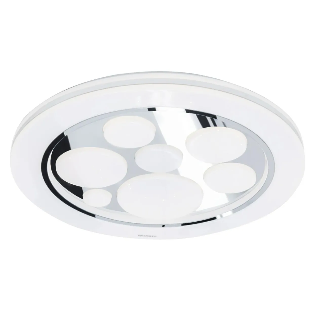 Plafon posiada średnicę 49 cm, w związku z tym można zamontować go w przestronnych wnętrzach. Idealnie nadaje się do tego, by ozdobić salon, jadalnię lub sypialnię, a dzięki podwyższonej klasie szczelności (IP44) sprawdza się nawet łazience.