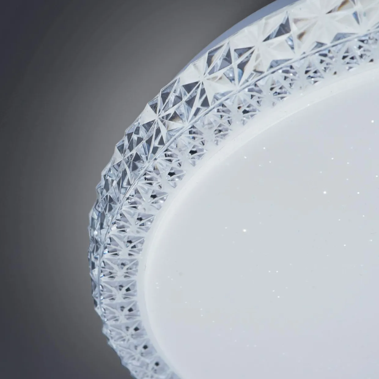 Podstawa lampy została wykonana z połączenia metalu i tworzywa sztucznego. W oprawę został wkomponowany szklany klosz. Jego powierzchnię ozdobiono niewielkimi elementami dekoracyjnymi, które po zapaleniu światła tworzą efekt „gwieździstego nieba”.