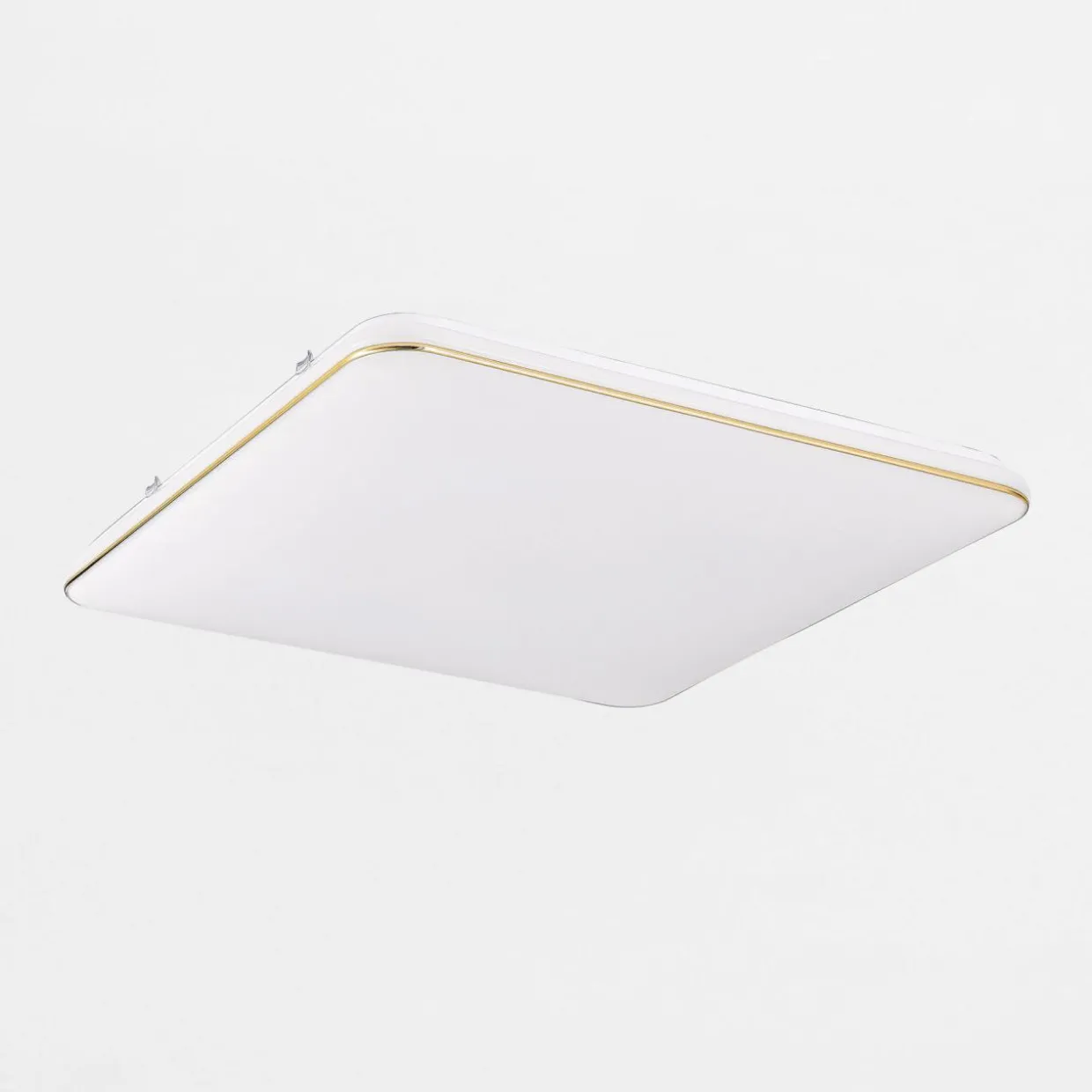 - Ozdobne, białe wykończenie ze złotym dekorem doskonale równoważy prosty, funkcjonalny styl plafonu – jednocześnie pozwala dopasować lampą do specyfiki wnętrza w nowoczesnym stylu.