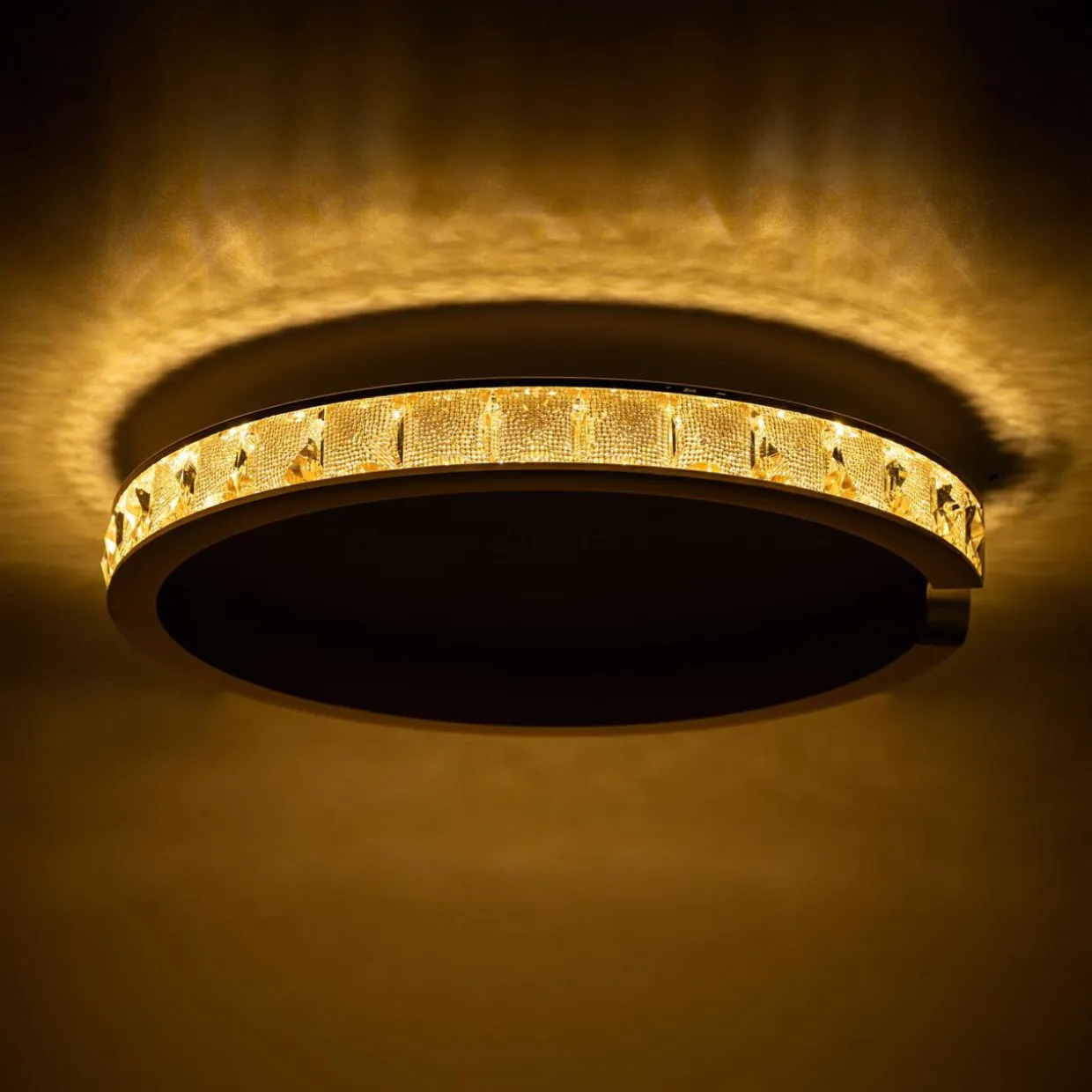 Lubisz złote wykończenie i błysk światła przepuszczonego przez kryształ? Plafon MURIEL posiada właśnie takie wykończenie.