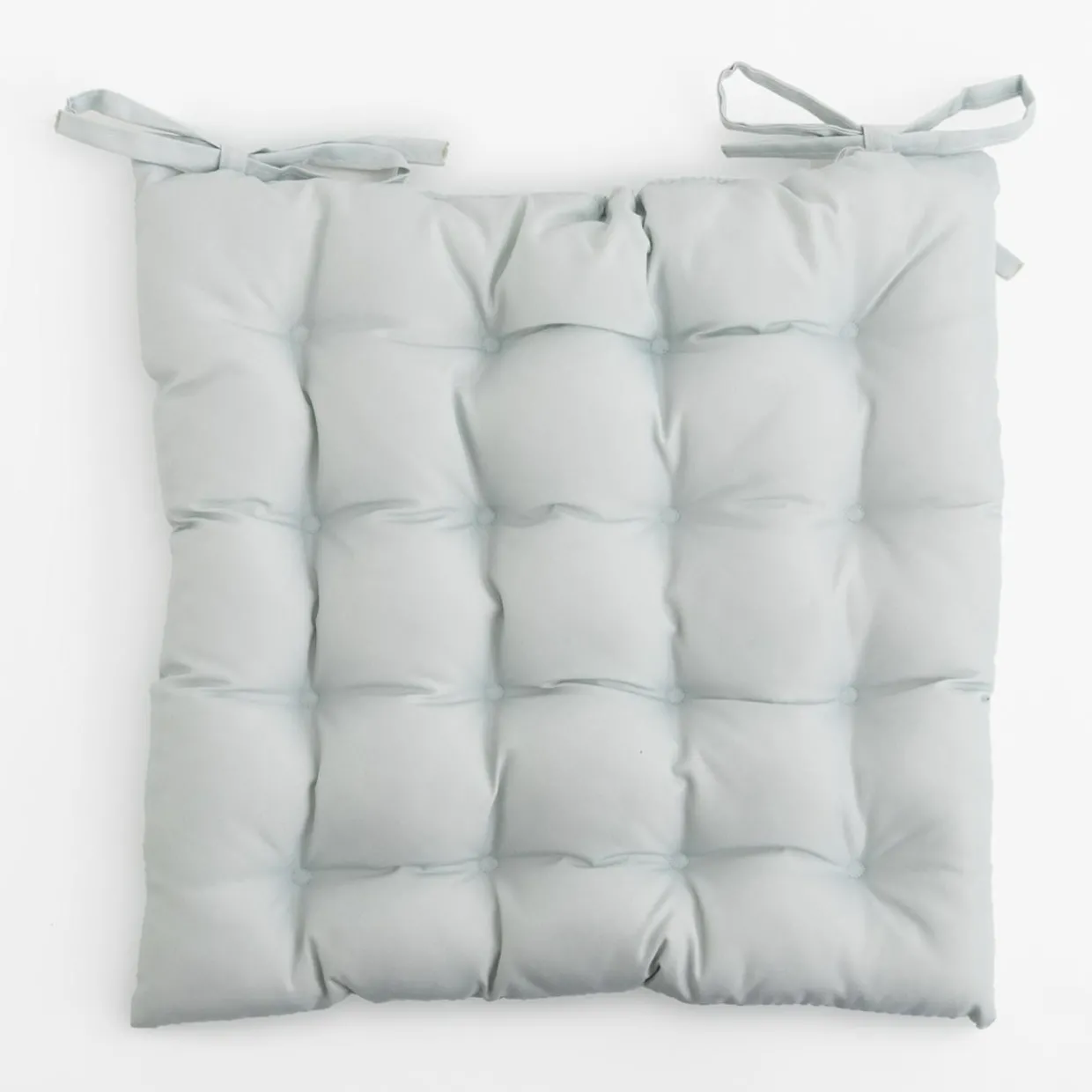 - Jasnoszara poduszka na krzesło pasuje do minimalistycznej aranżacji.