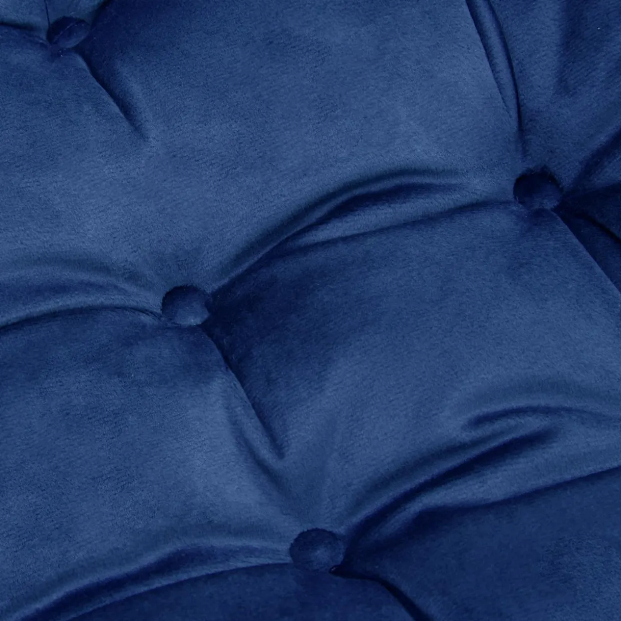Estetyczne pikowanie i elegancka, welurowa tkanina w modnym granatowym kolorze urozmaicą aranżację kuchni, jadalni czy pokoju dziennego.