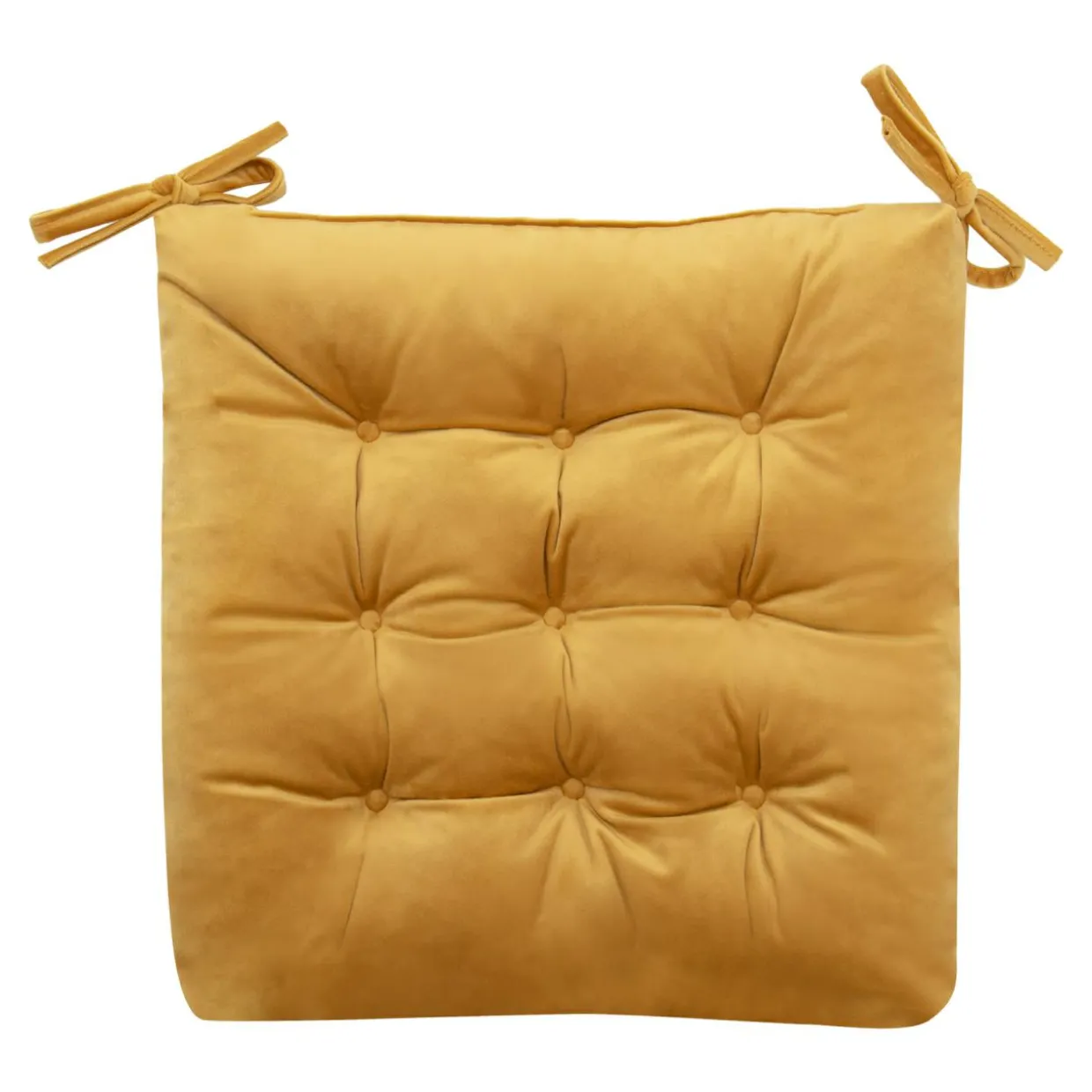 Estetyczne pikowanie i elegancka, welurowa tkanina w modnym musztardowym odcieniu urozmaicą aranżację kuchni, jadalni czy pokoju dziennego.